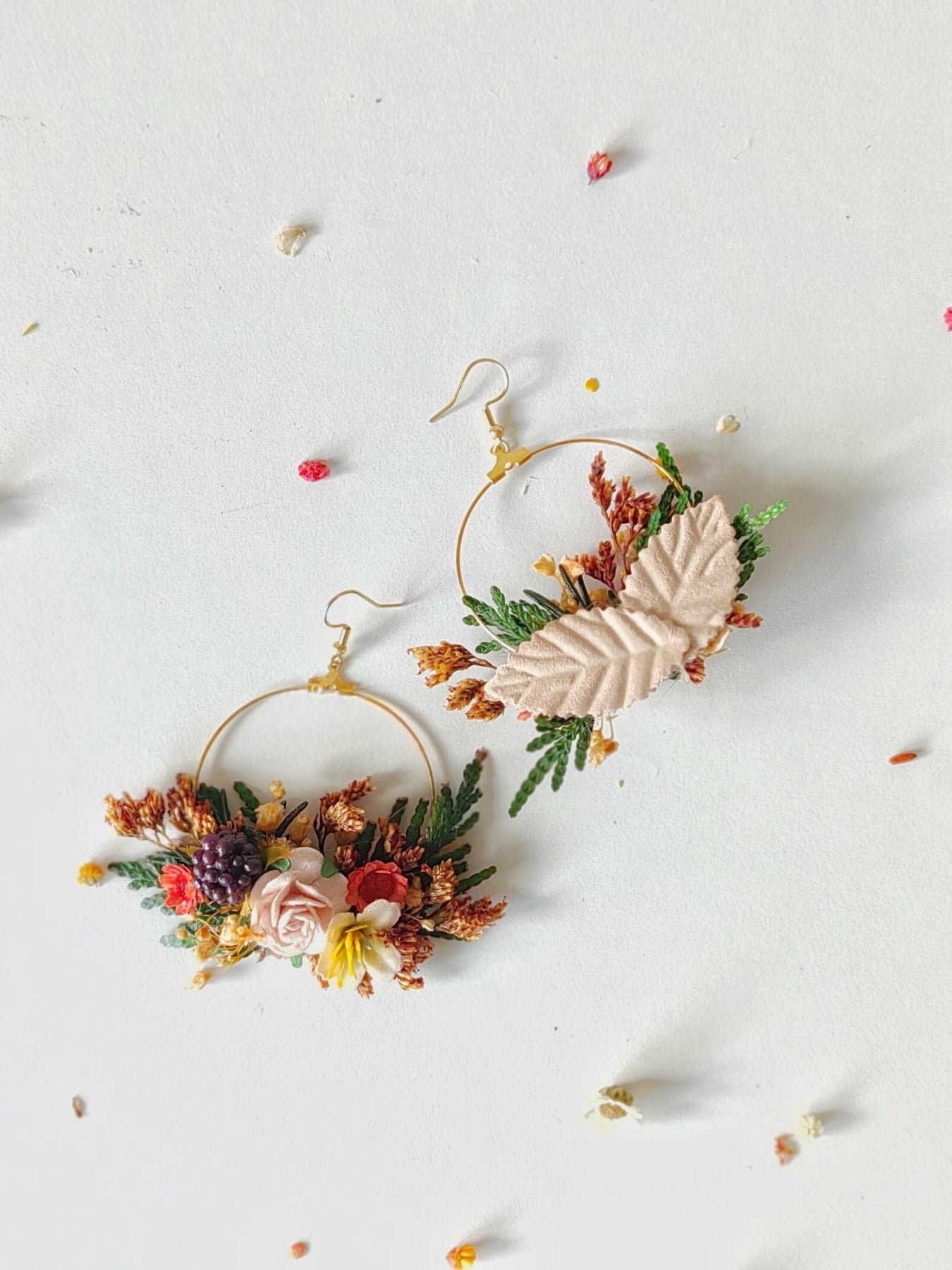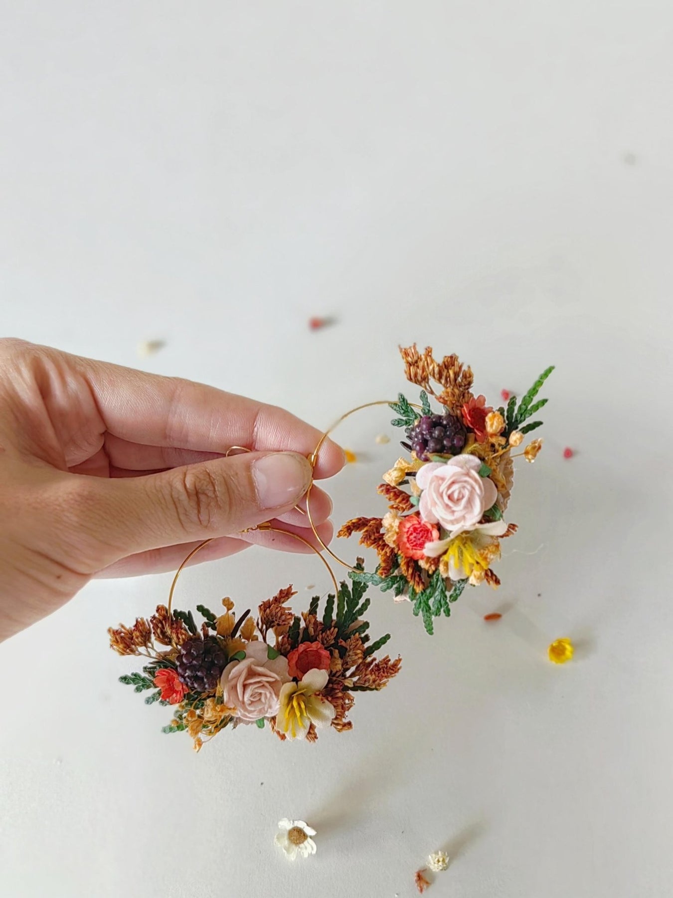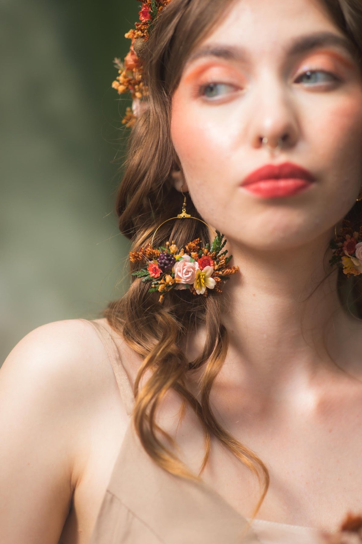 Autumn Flower Circle Earrings: Woodland Wedding Jewelry – handmade floral hair accessory by magaela