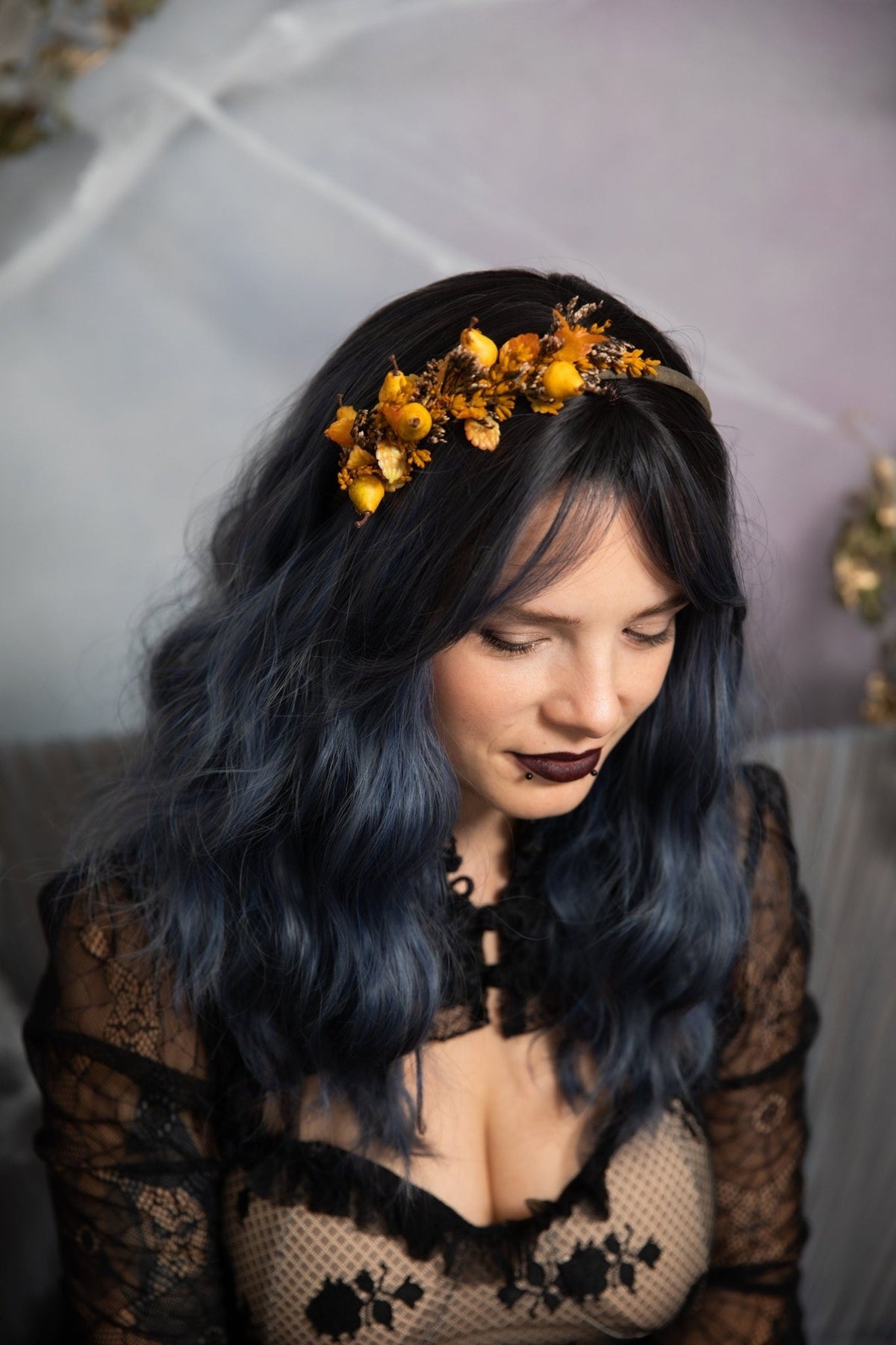 Autumn Flower Headband with Pears: Fall Bridal Hair Accessory – handmade floral hair accessory by magaela