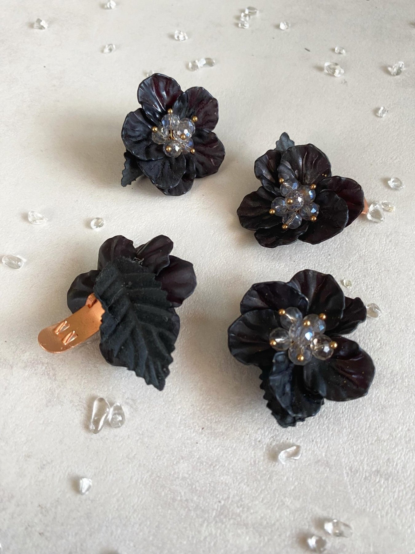 Black Floral Shoe Clips: Glam Wedding Bridal Shoe Decoration – handmade floral hair accessory by magaela