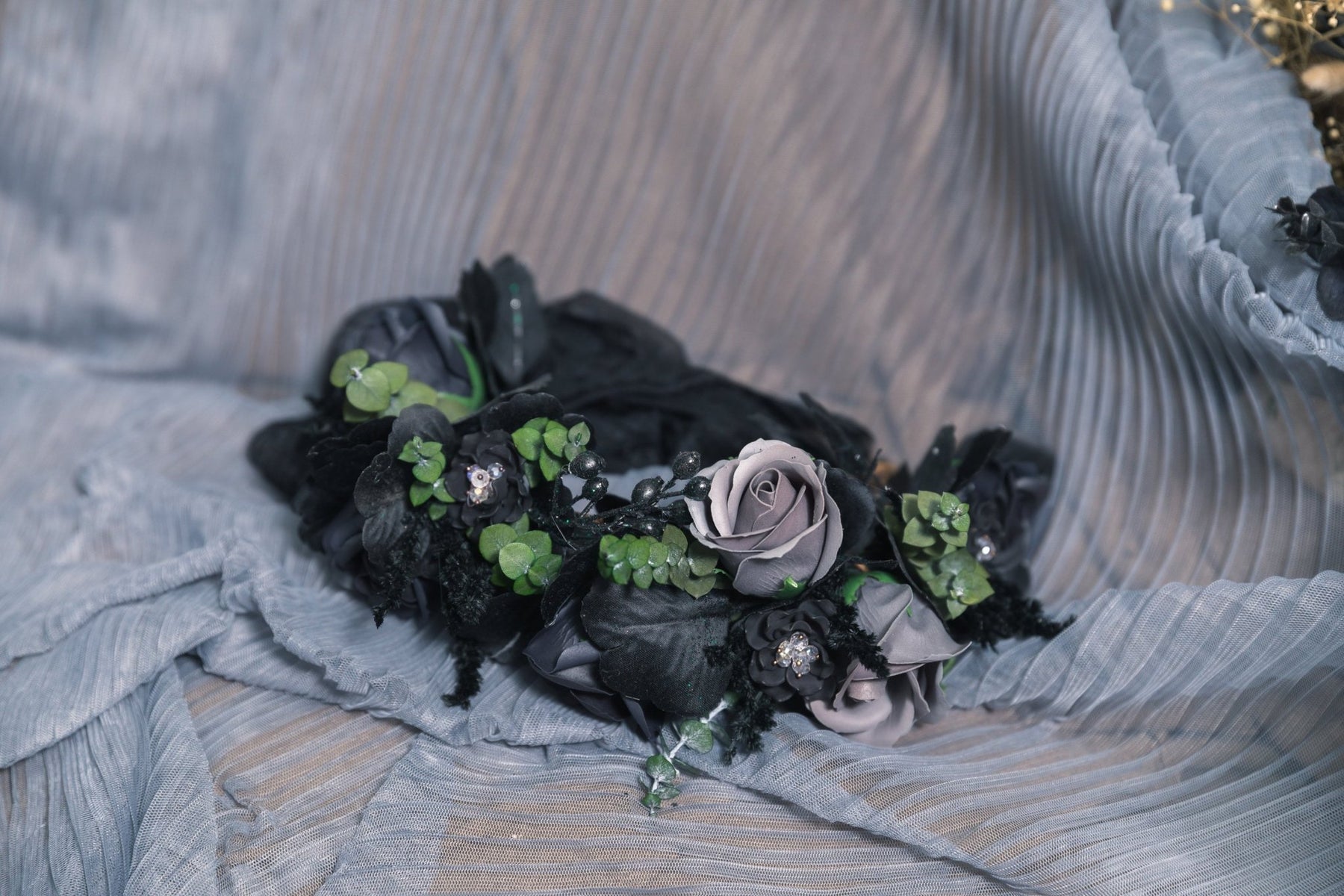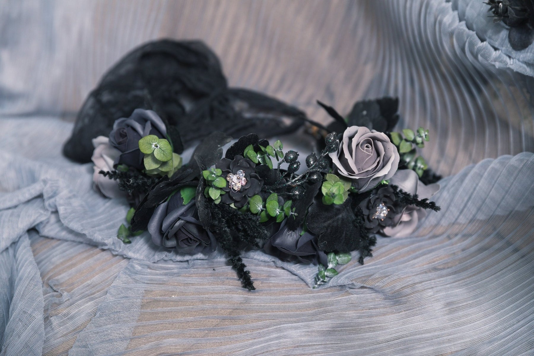 Black Rose Flower Crown: Gothic Halloween Wedding Headpiece