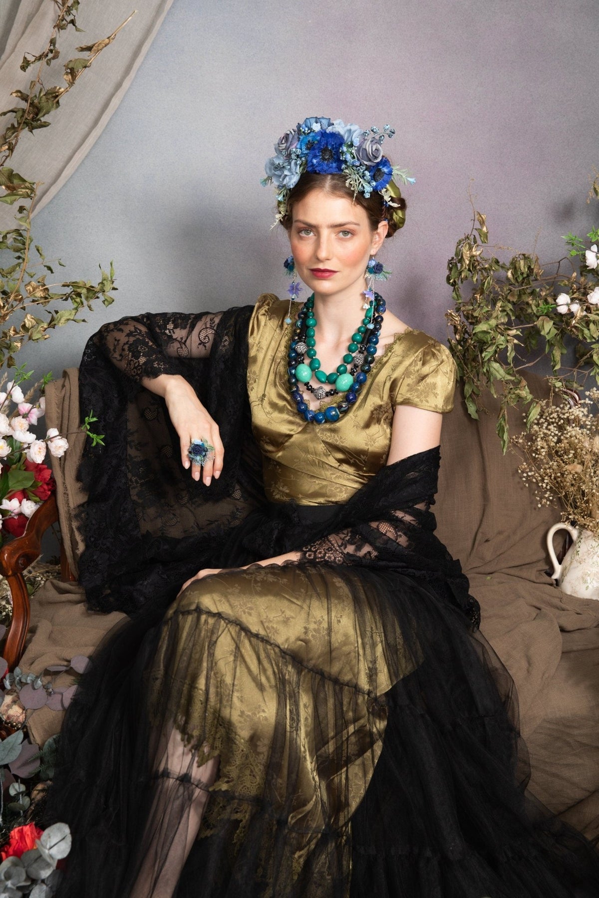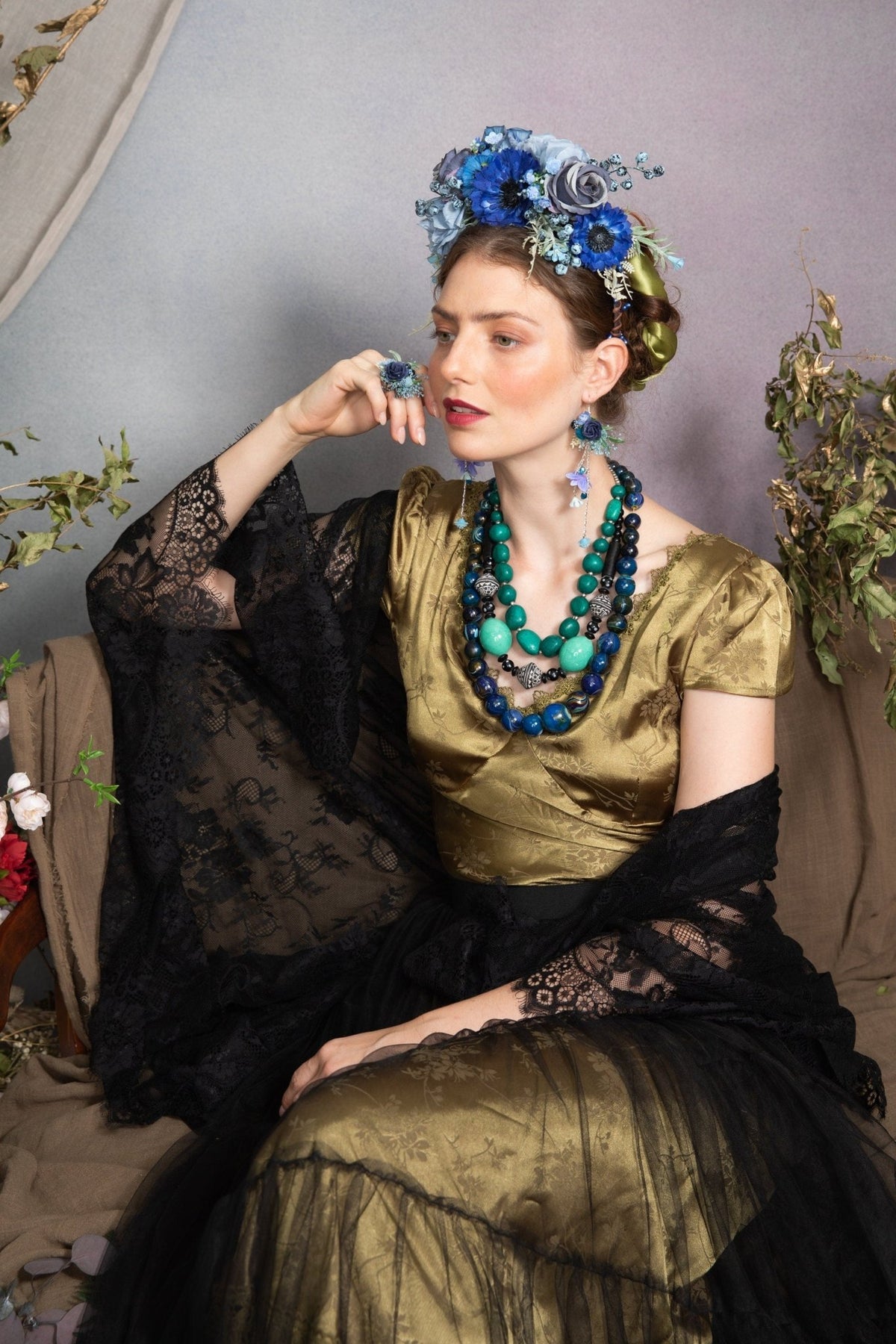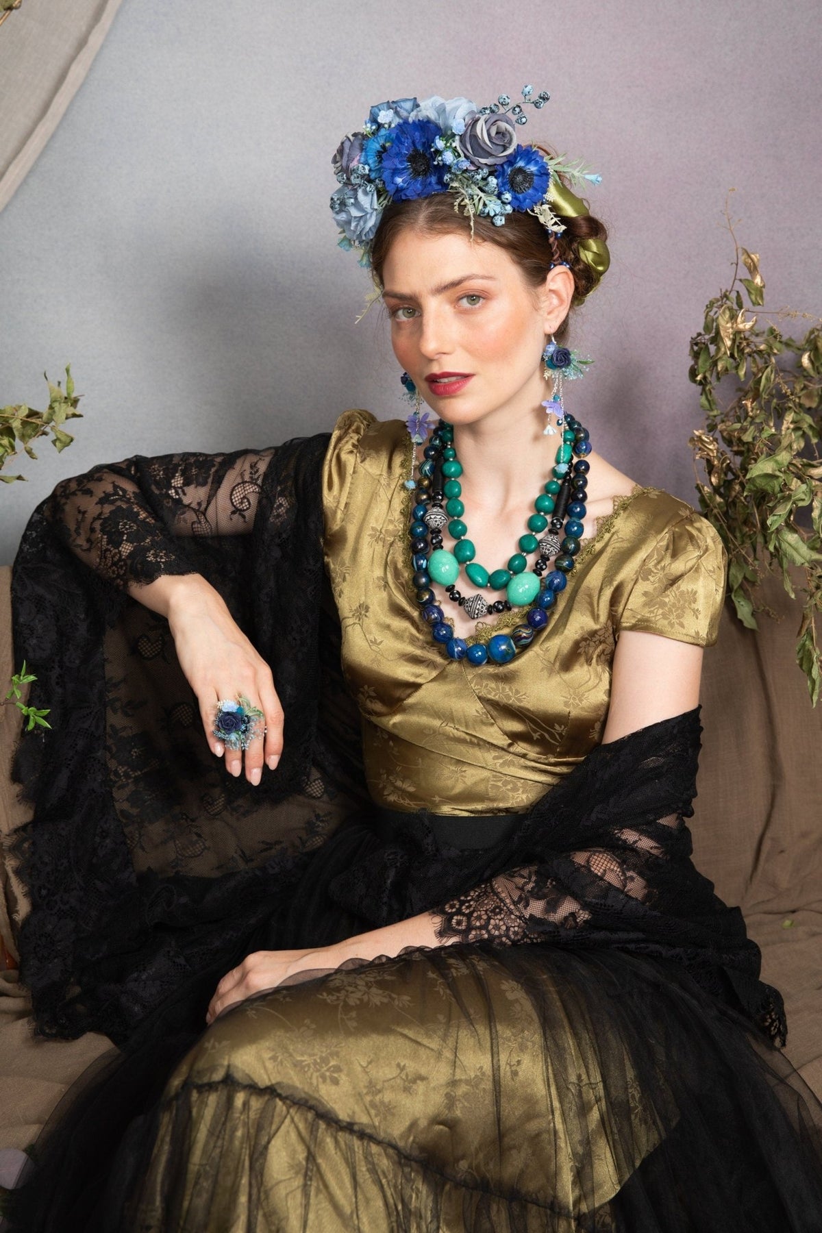 Blue Rose Flower Ring: Adjustable Bridal Wedding Jewelry – handmade floral hair accessory by magaela