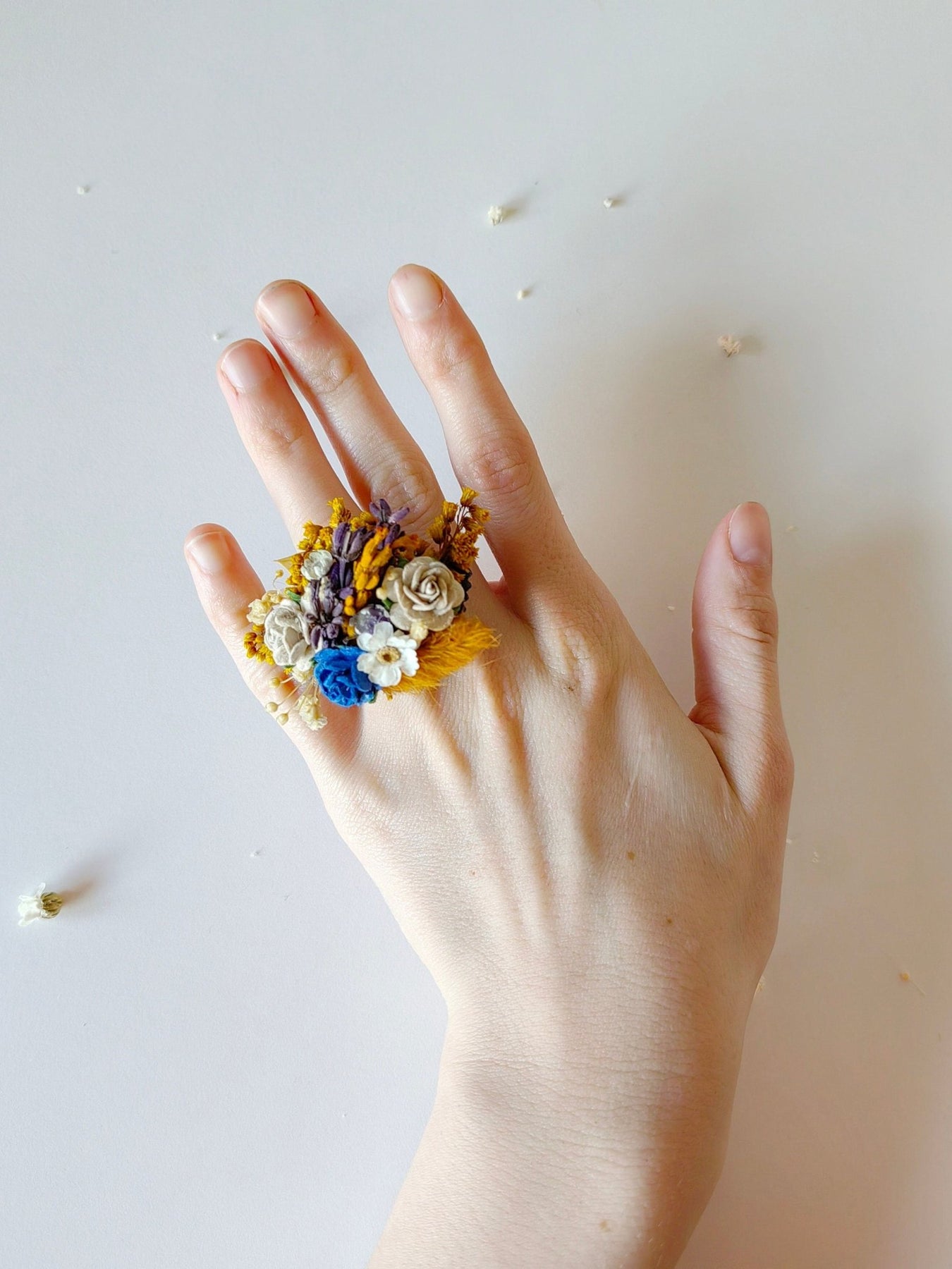 Boho Flower Ring: Autumn Wedding Jewelry, Adjustable Band – handmade floral hair accessory by magaela