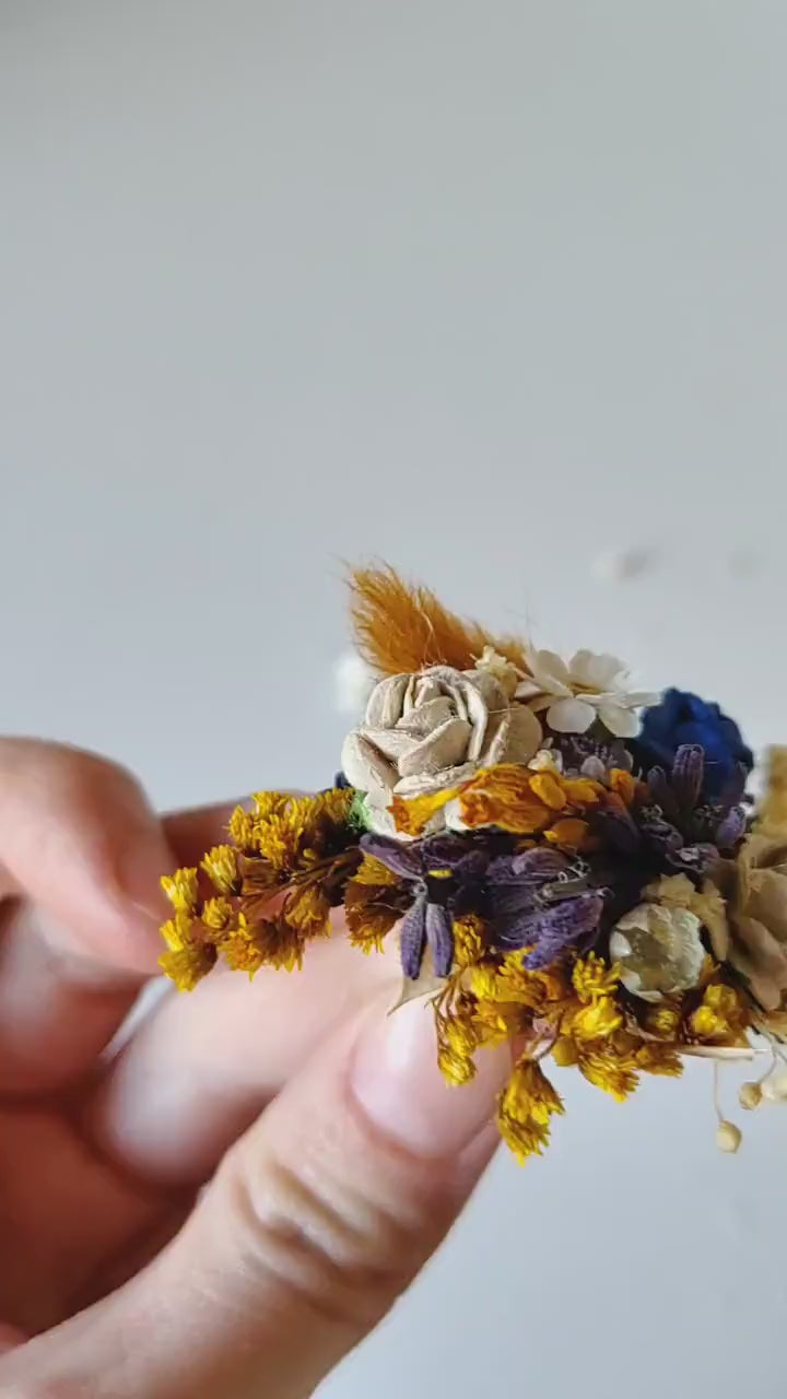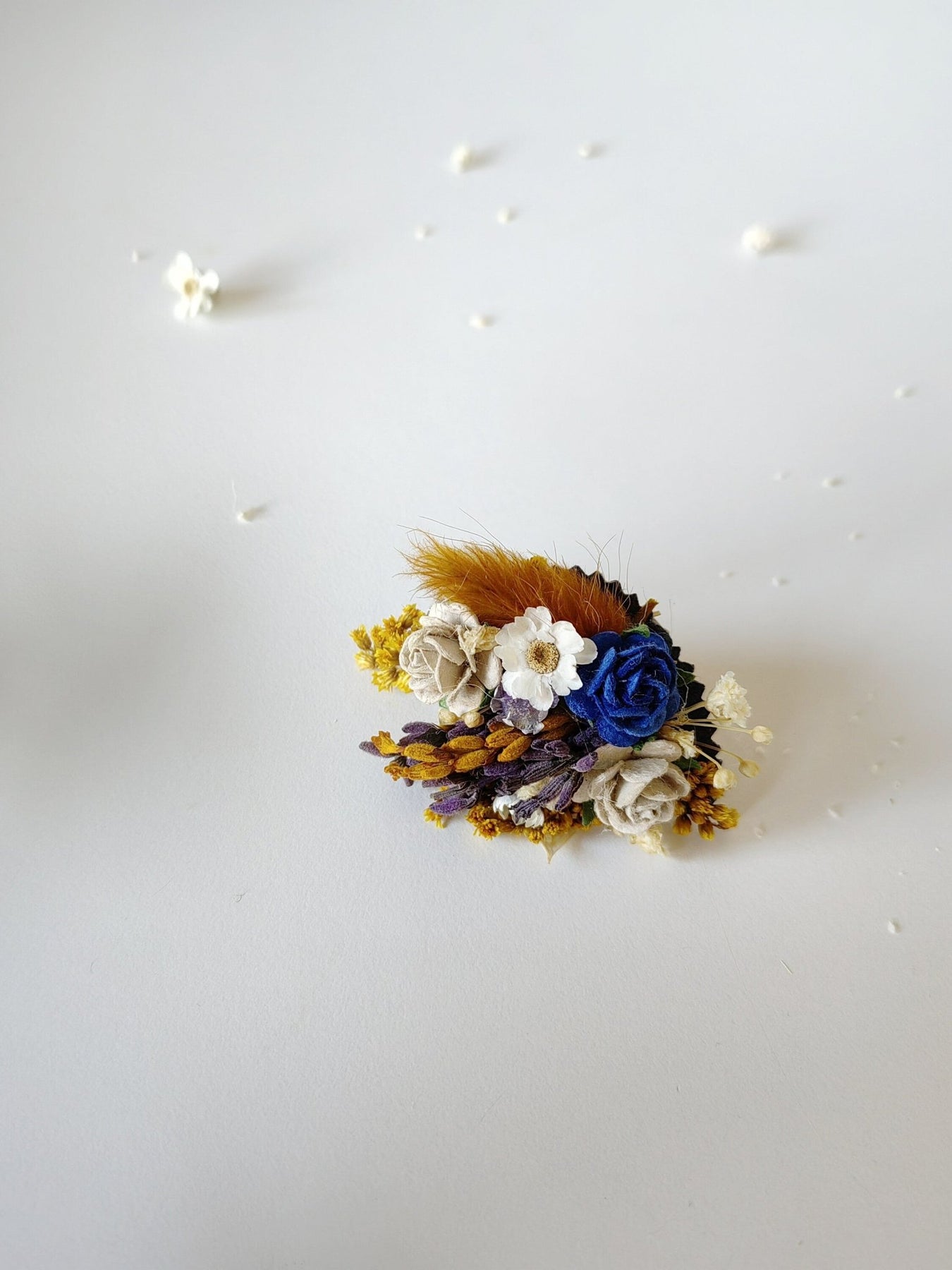 Perfect for weddings, photoshoots, parties, other events or everyday look. Nice gift for bridesmaids or friends. Made of artificial, dried and preserved material and other material used for arranging.