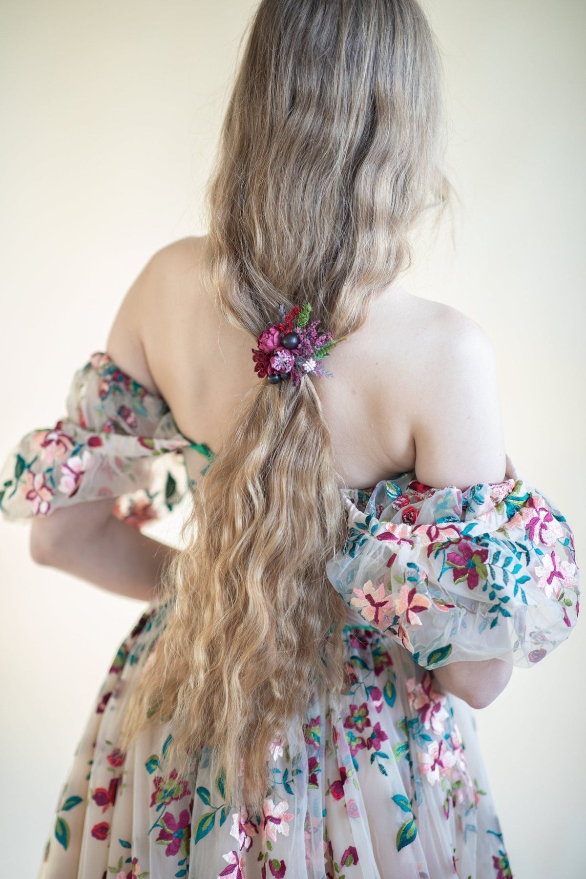 Burgundy Flower Hair Tie: Wedding Hair Accessories – handmade floral hair accessory by magaela