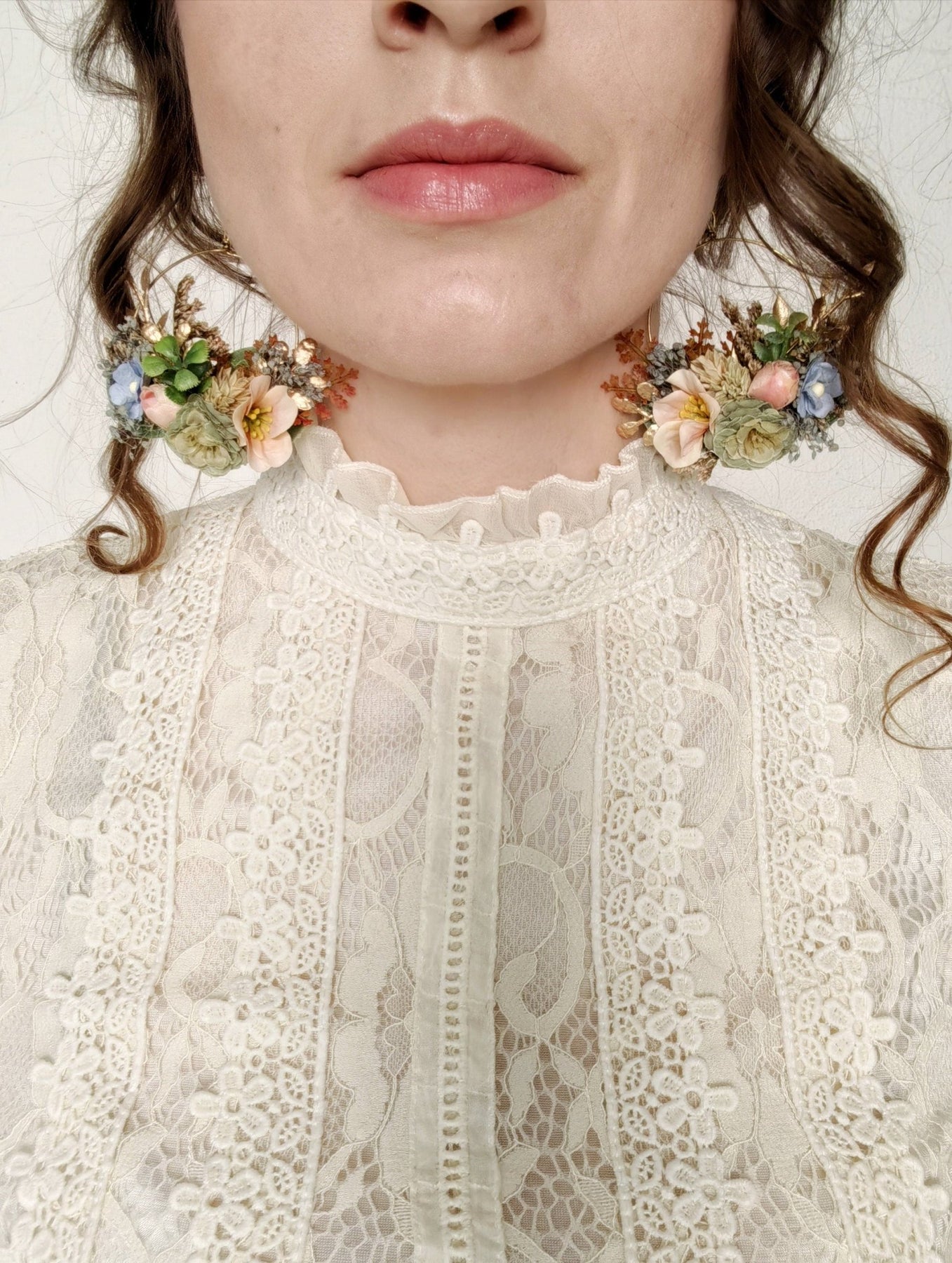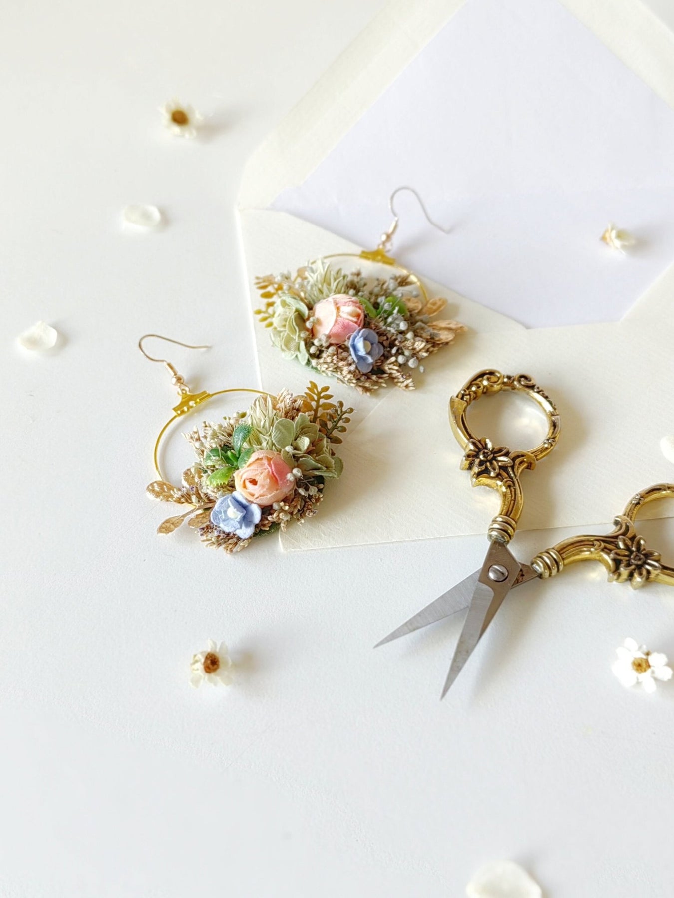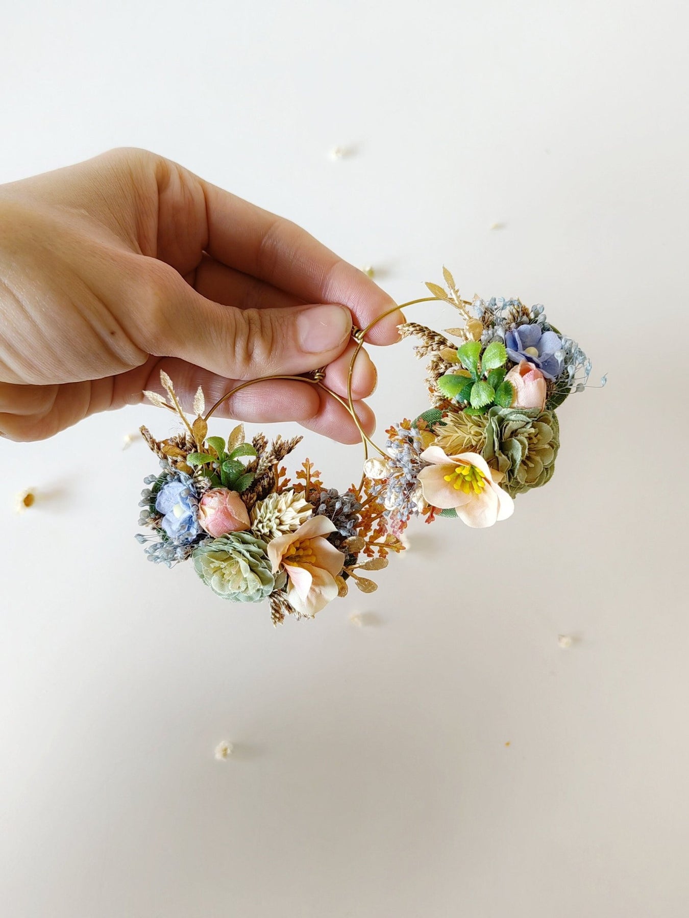 Colorful Flower Circle Earrings: Boho Wedding Jewelry – handmade floral hair accessory by magaela