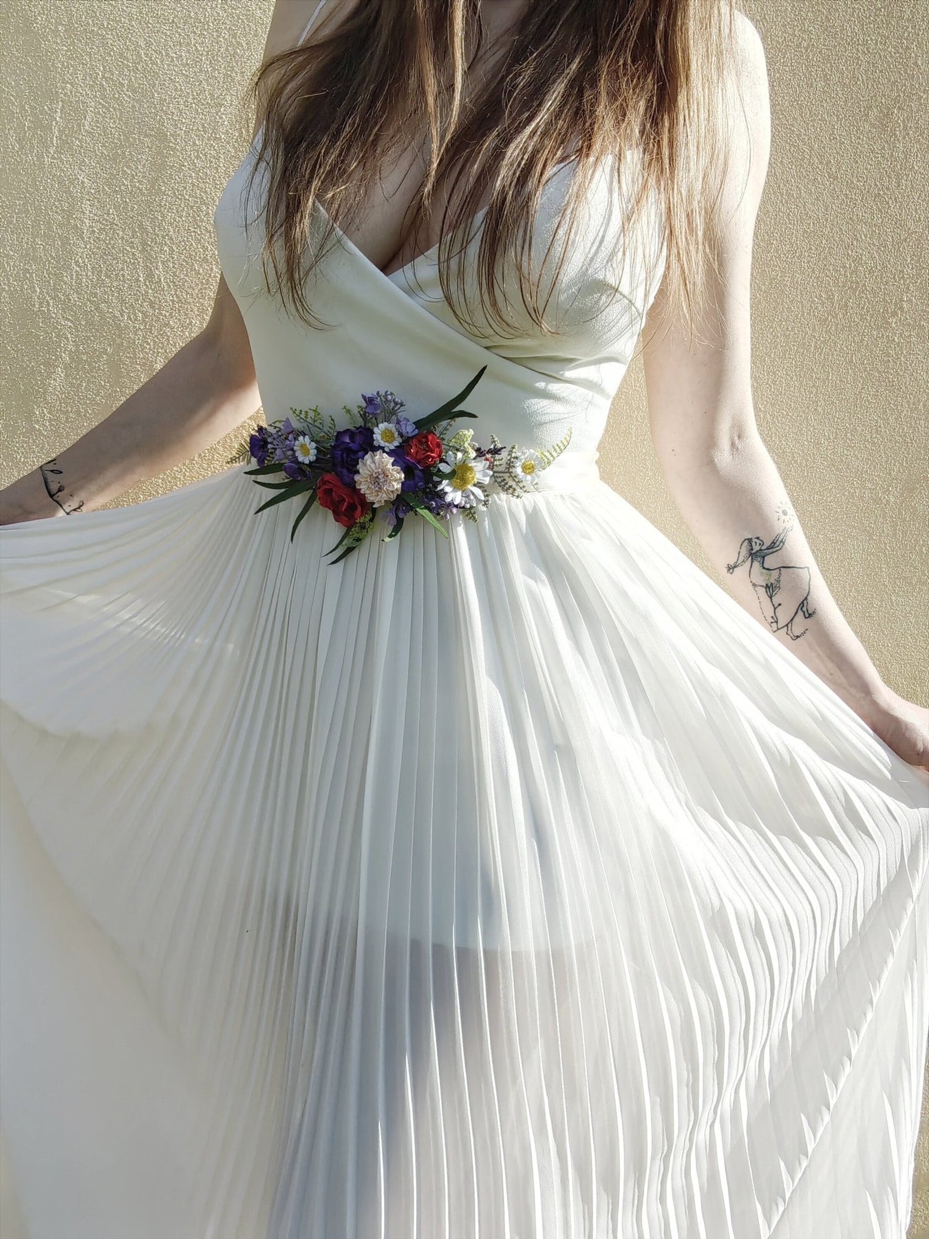 Daisy Bridal Flower Belt: Purple Meadow Wedding Dress Accessory – handmade floral hair accessory by magaela