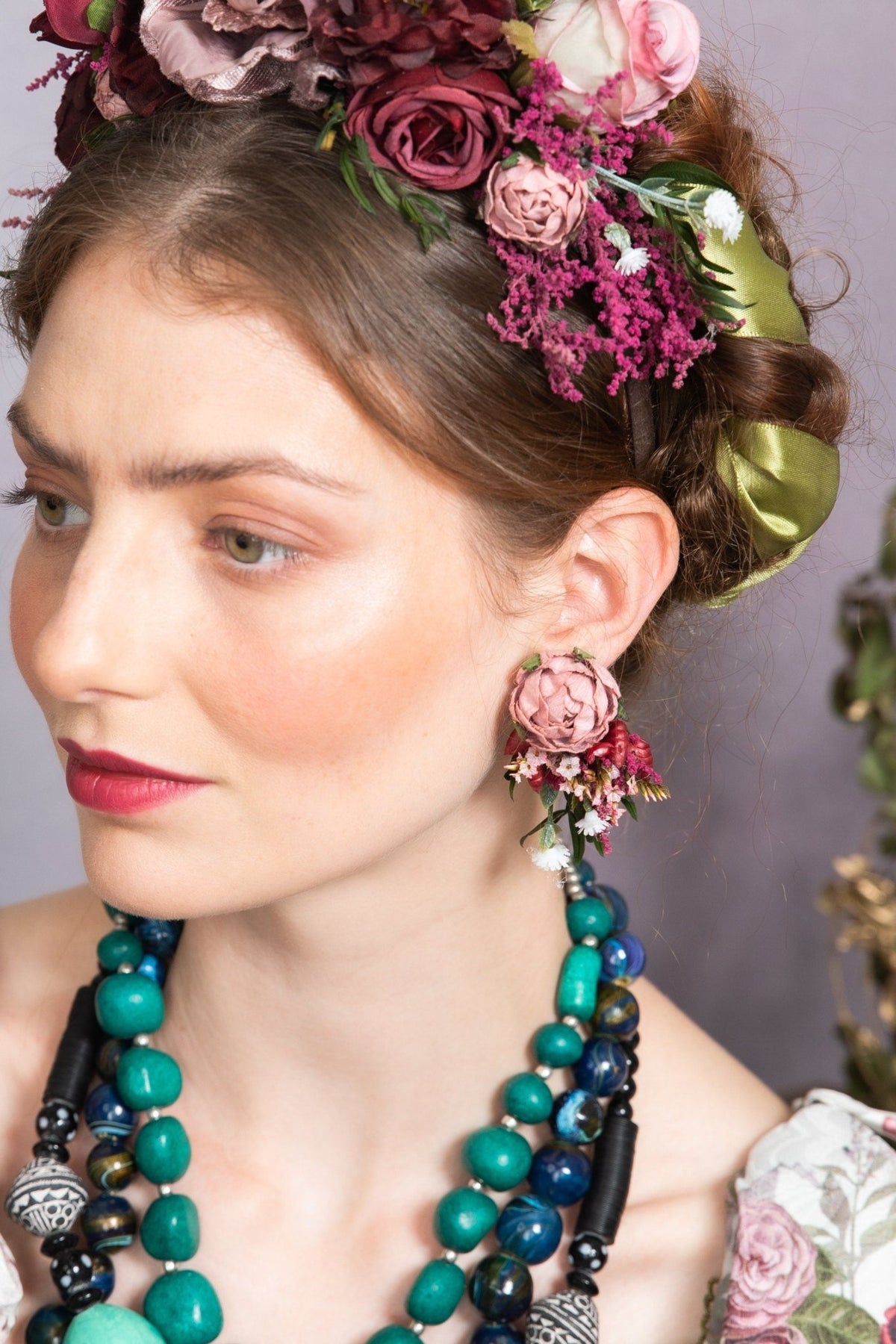 Dusty Pink Peony Earrings: Wedding Bridal Flower Jewellery – handmade floral hair accessory by magaela