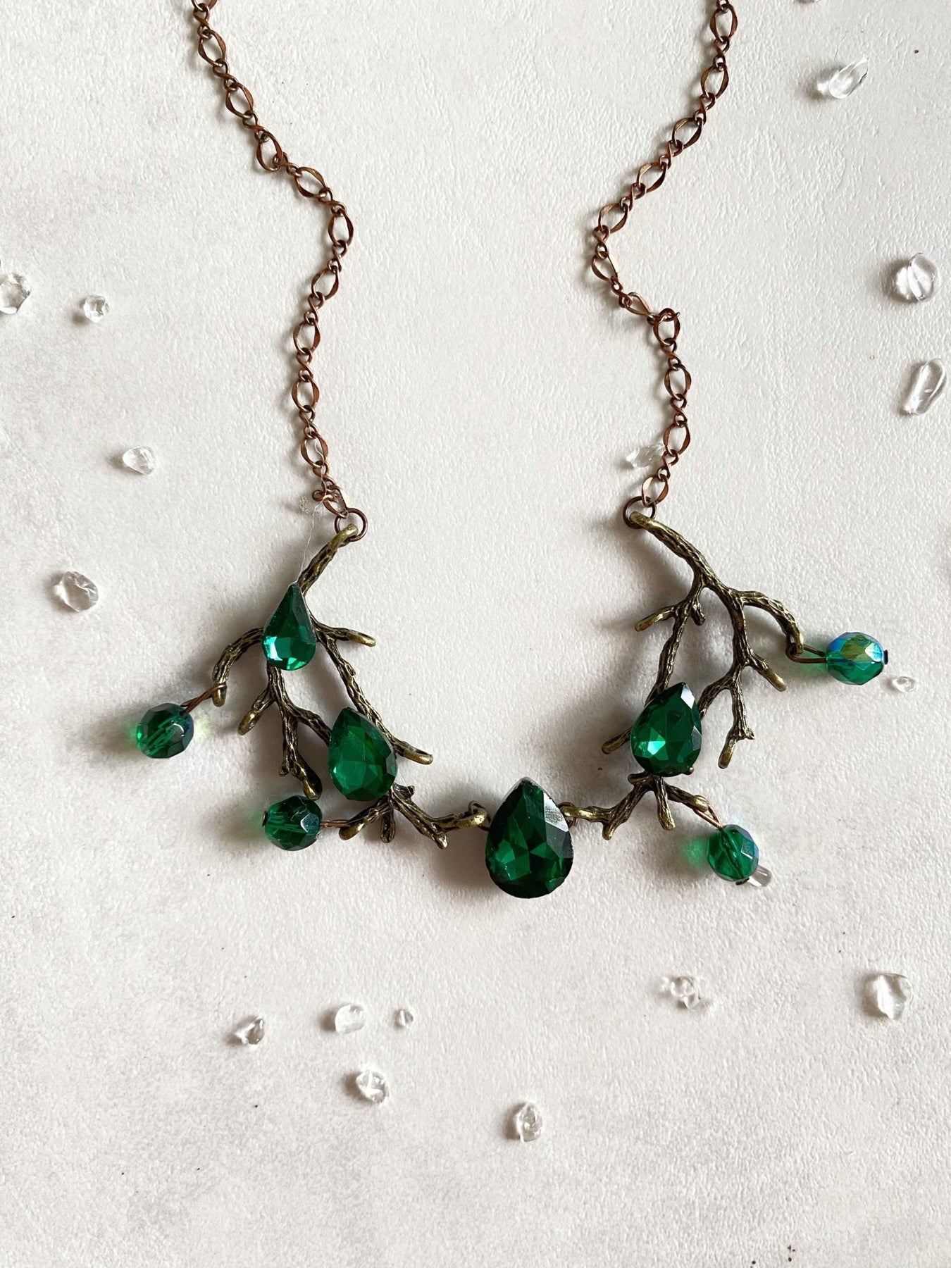 Emerald Green Flower Necklace: Glam Wedding Jewelry – handmade floral hair accessory by magaela