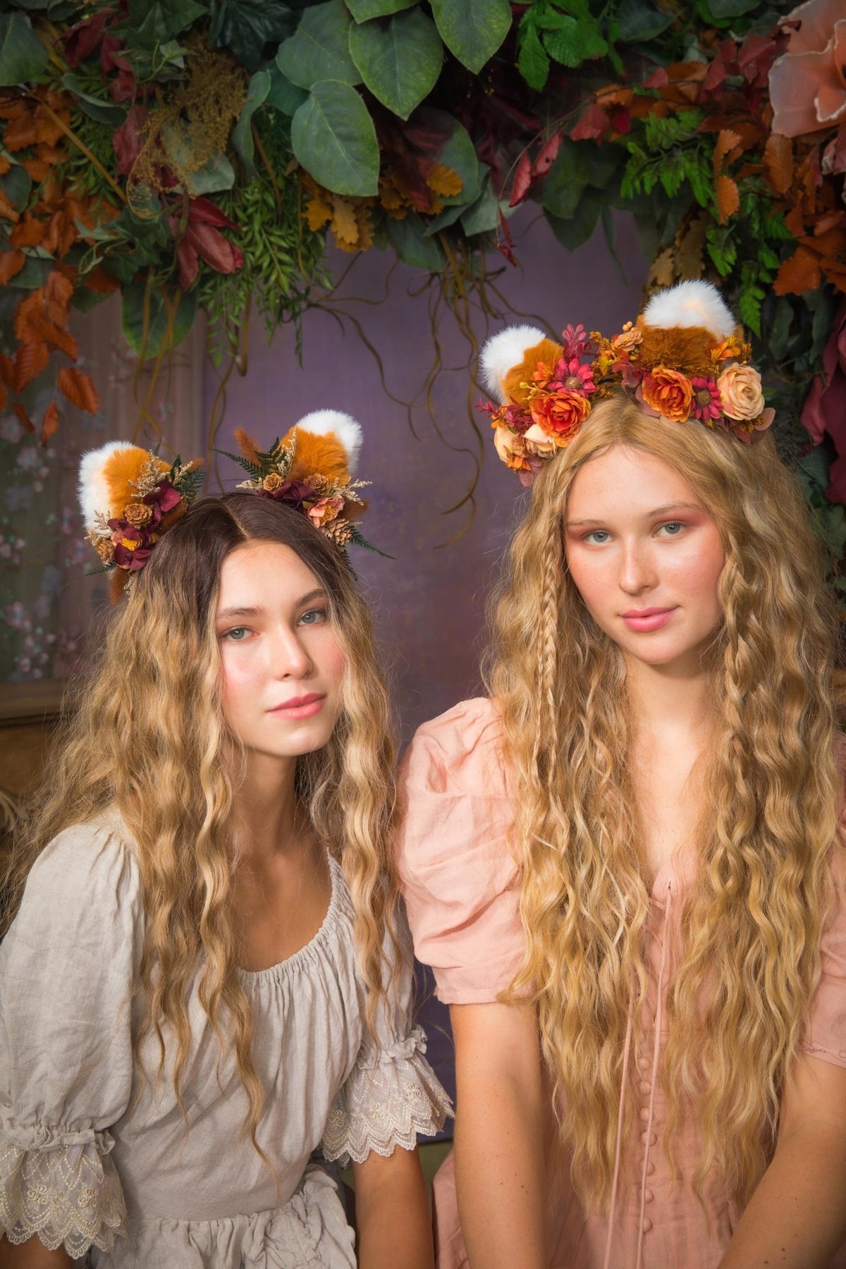 Fox ears represent intelligence, cleverness, playfulness, and wit – combined with our floral or natural arrangements, they give the headband a touch of fantasy, originality, and subtle wild beauty.