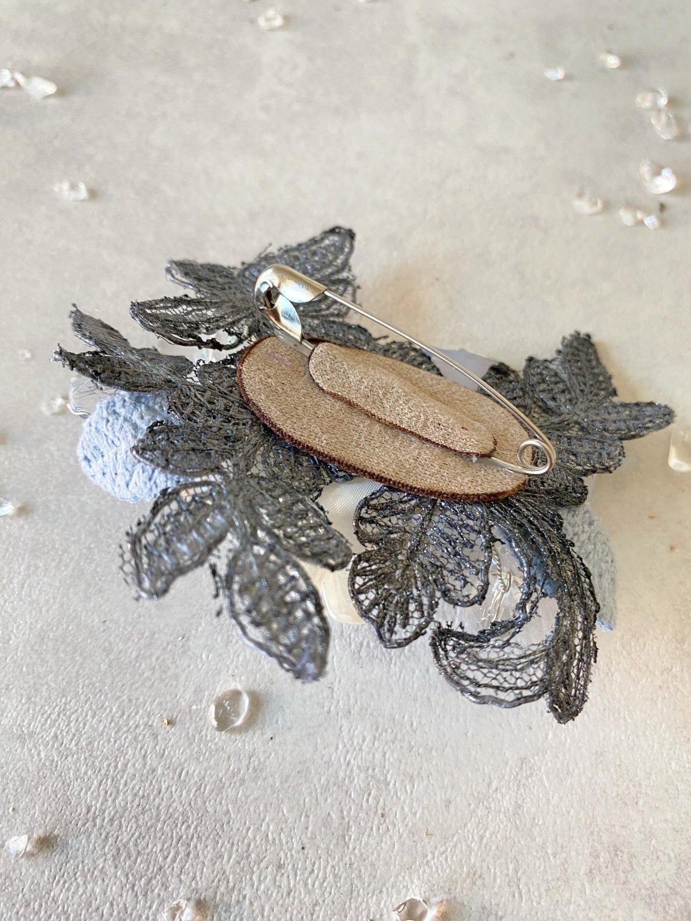 Glamour Flower Brooch with Moon: Romantic DG Style Brooch – handmade floral hair accessory by magaela