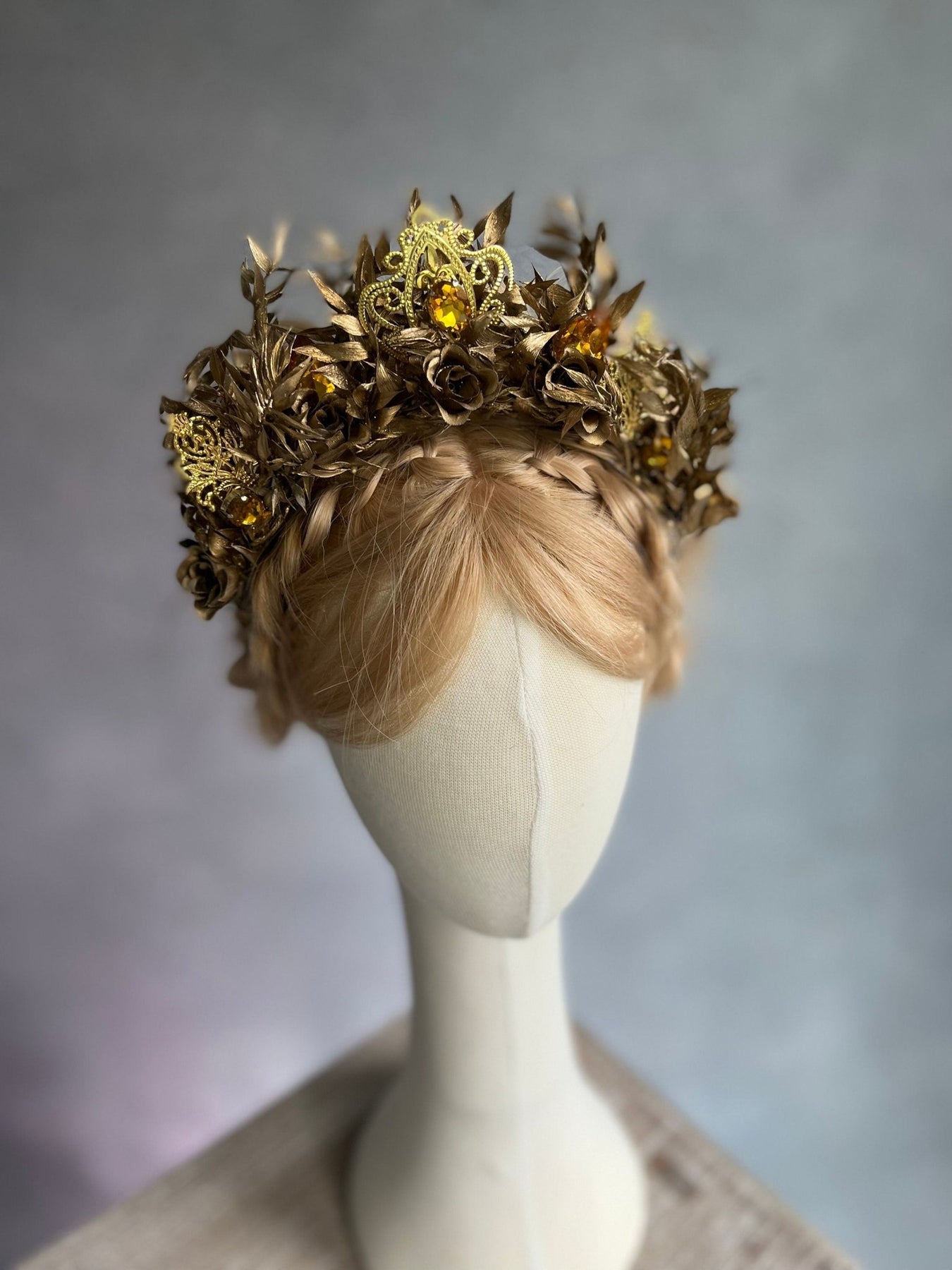 Golden Flower Bridal Crown: Crystal Wedding Tiara Headband – handmade floral hair accessory by magaela