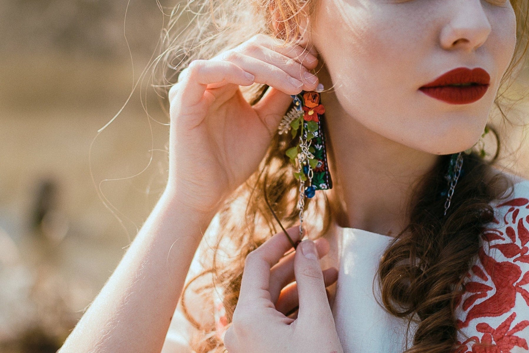 Handmade Folk Floral Earrings: Wedding Dangle Jewelry
