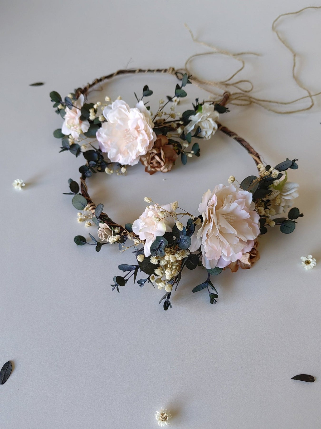Set of flower hair crowns - mother and daughter hair wreaths in boho rustic style