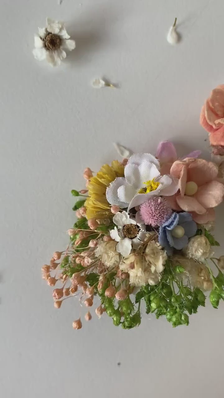 The earrings are made of artificial flowers, preserved flowers, leaves and grass and other trinkets used for arranging :)