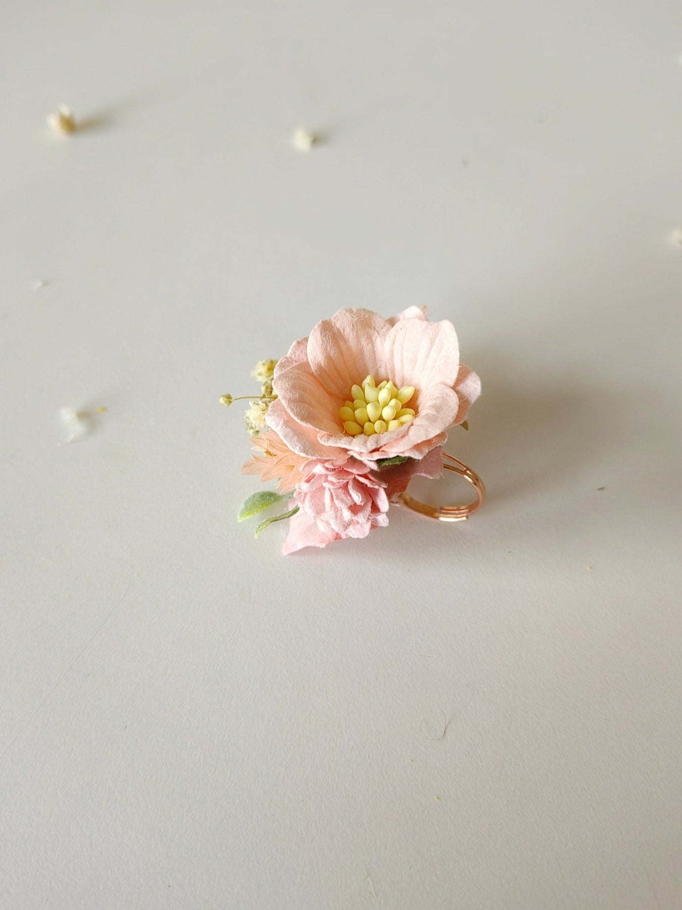 Pastel Peach Flower Ring: Boho Wedding Jewelry