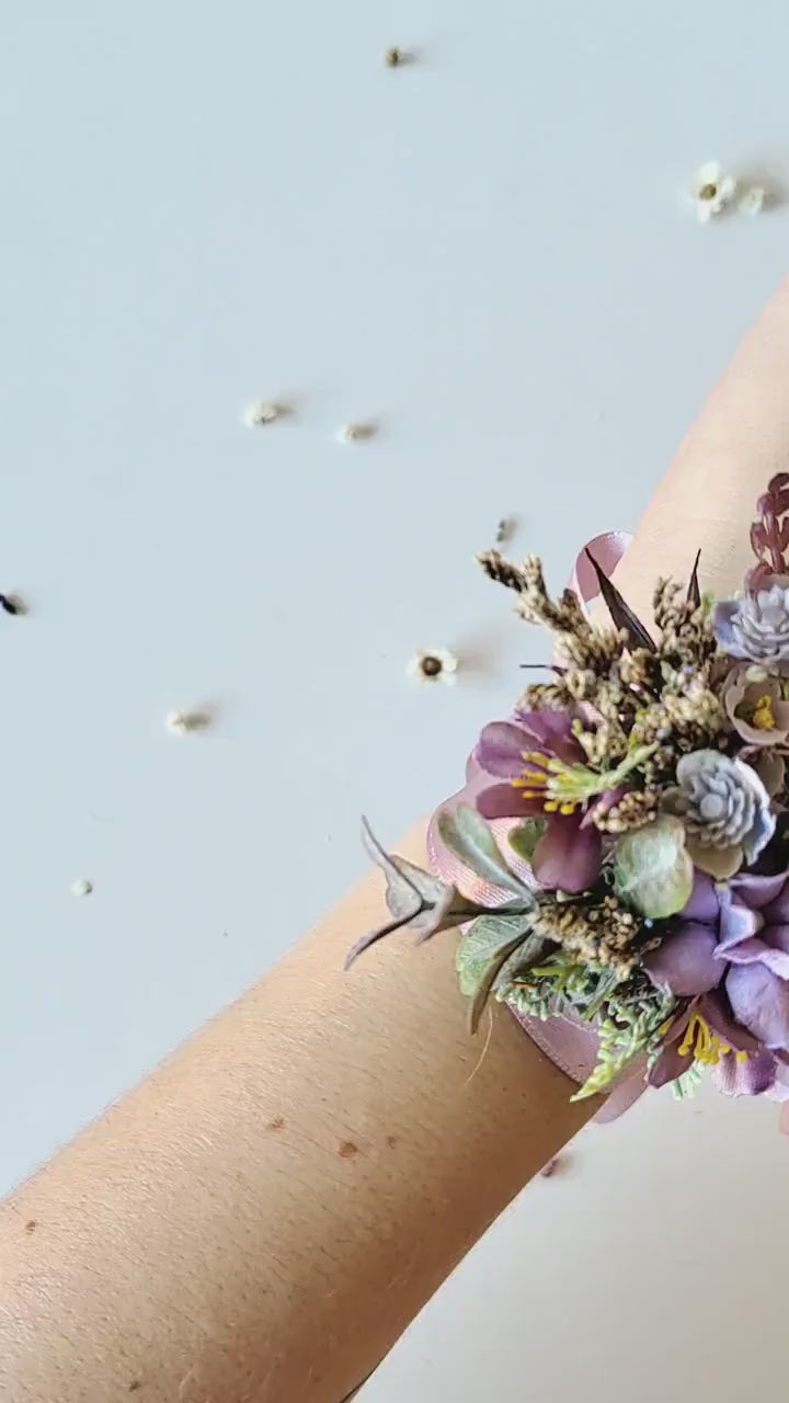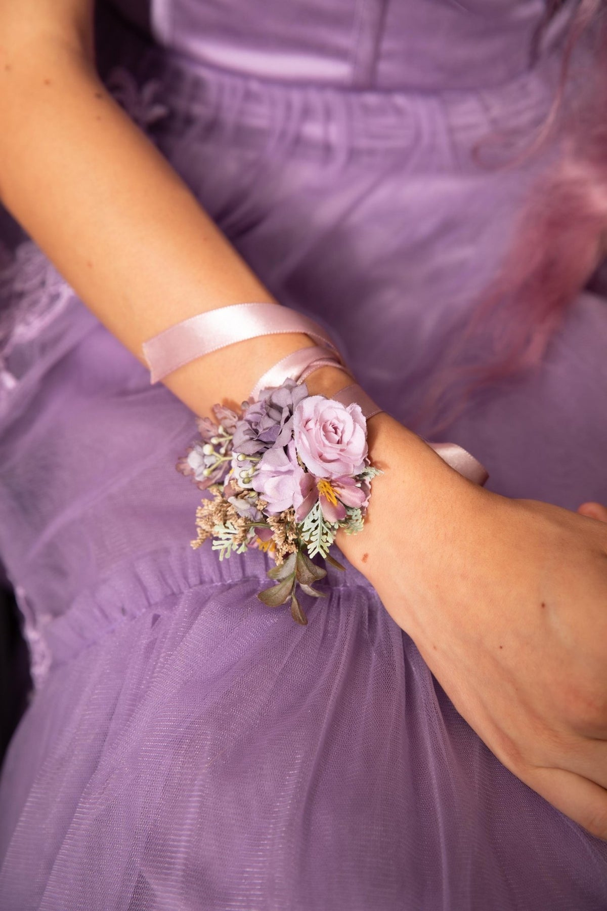 Purple Flower Bracelet: Lilac Wedding Wrist Corsage – handmade floral hair accessory by magaela