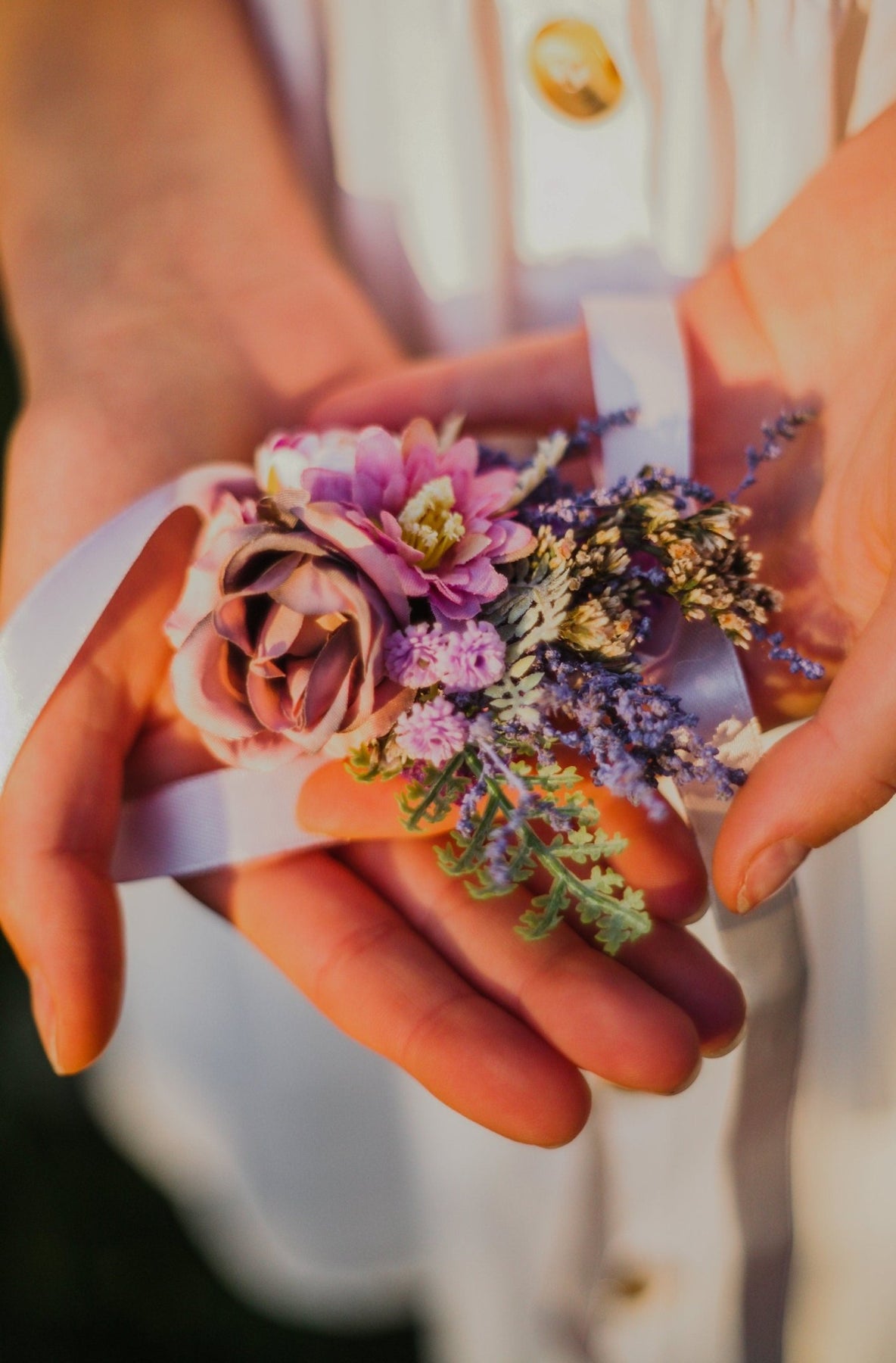 Purple Pink Flower Bracelet: Lavender Peony Wrist Corsage