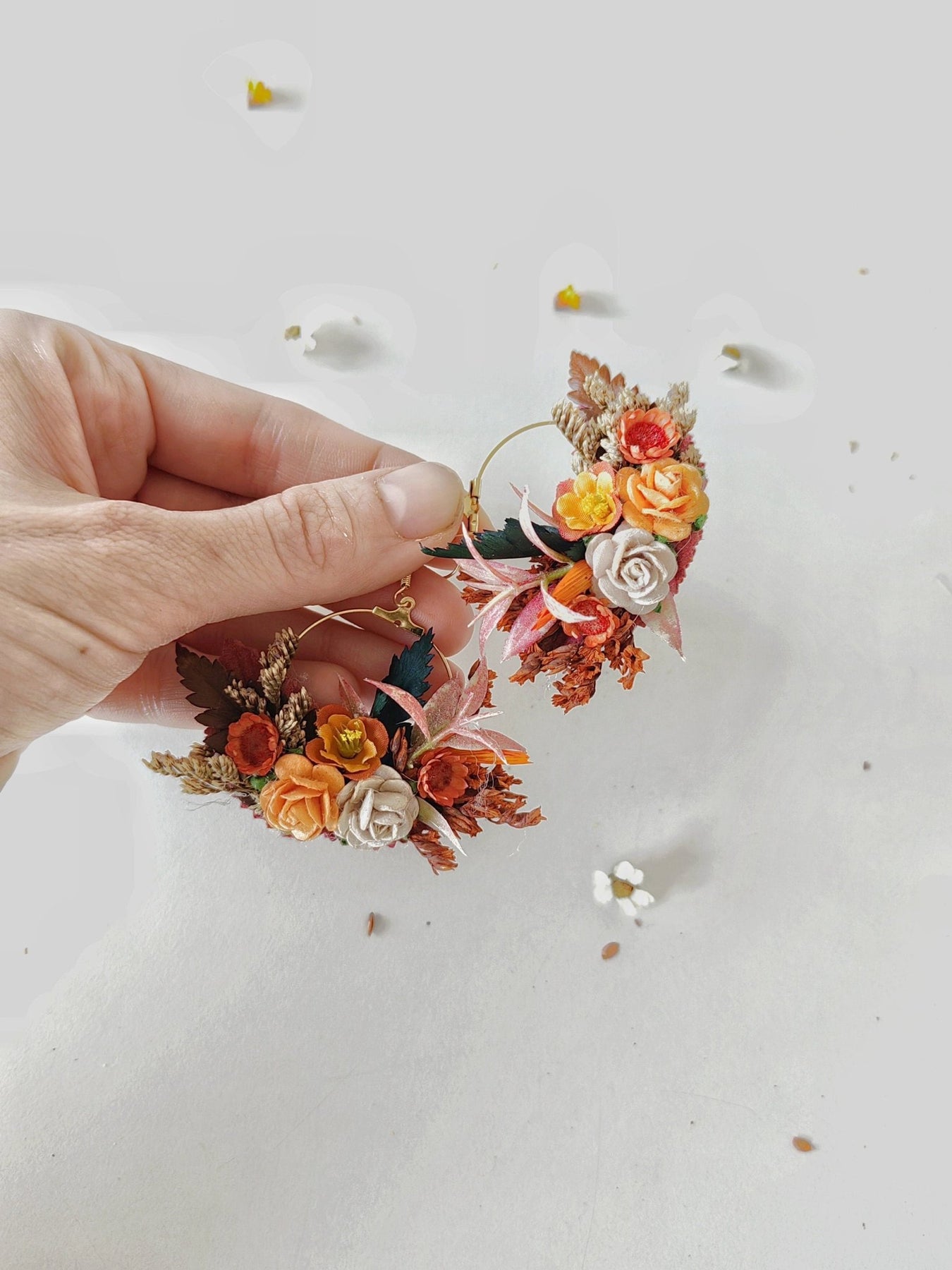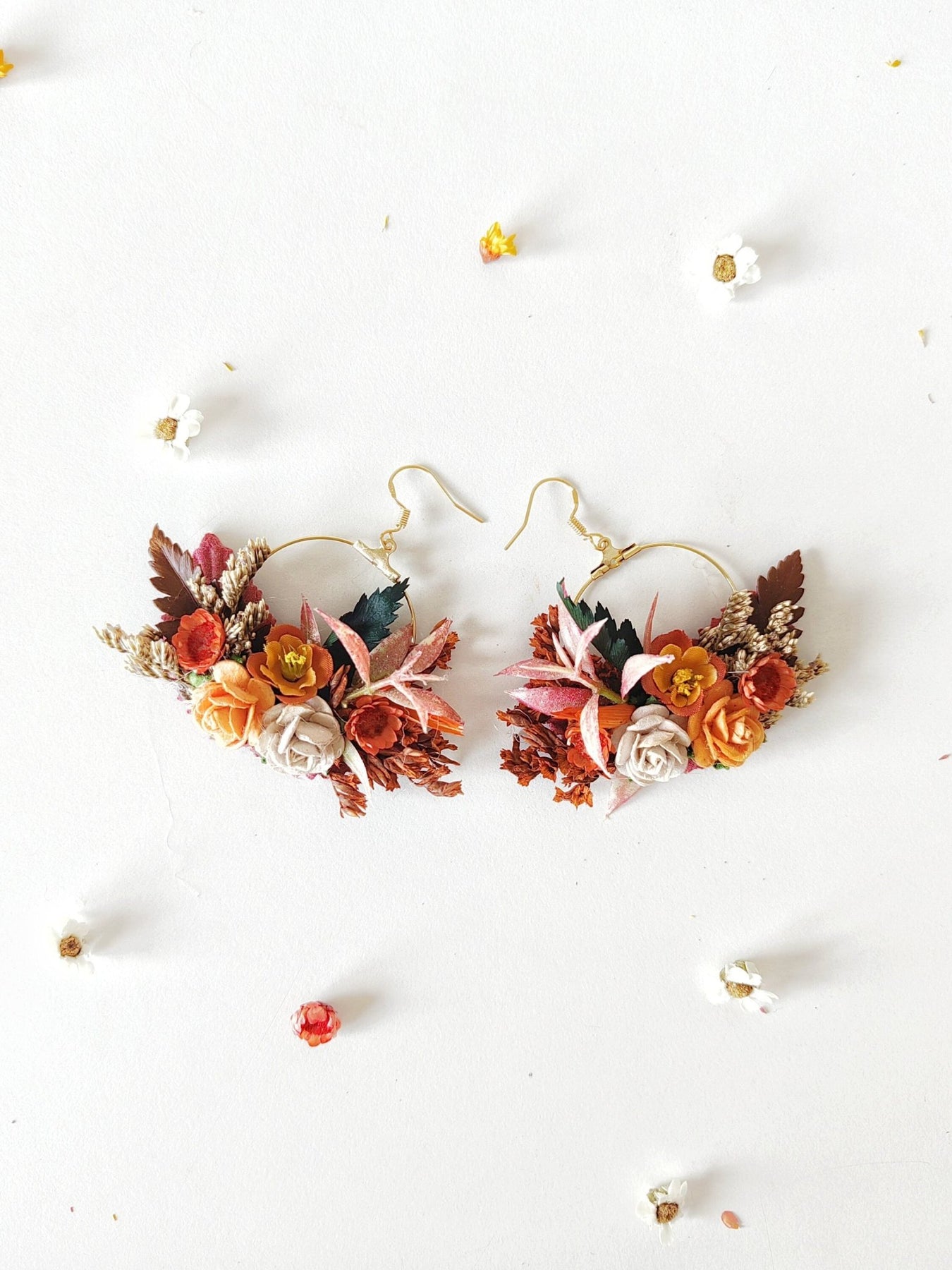 Terracotta Flower Circle Earrings: Autumn Wedding Jewelry – handmade floral hair accessory by magaela
