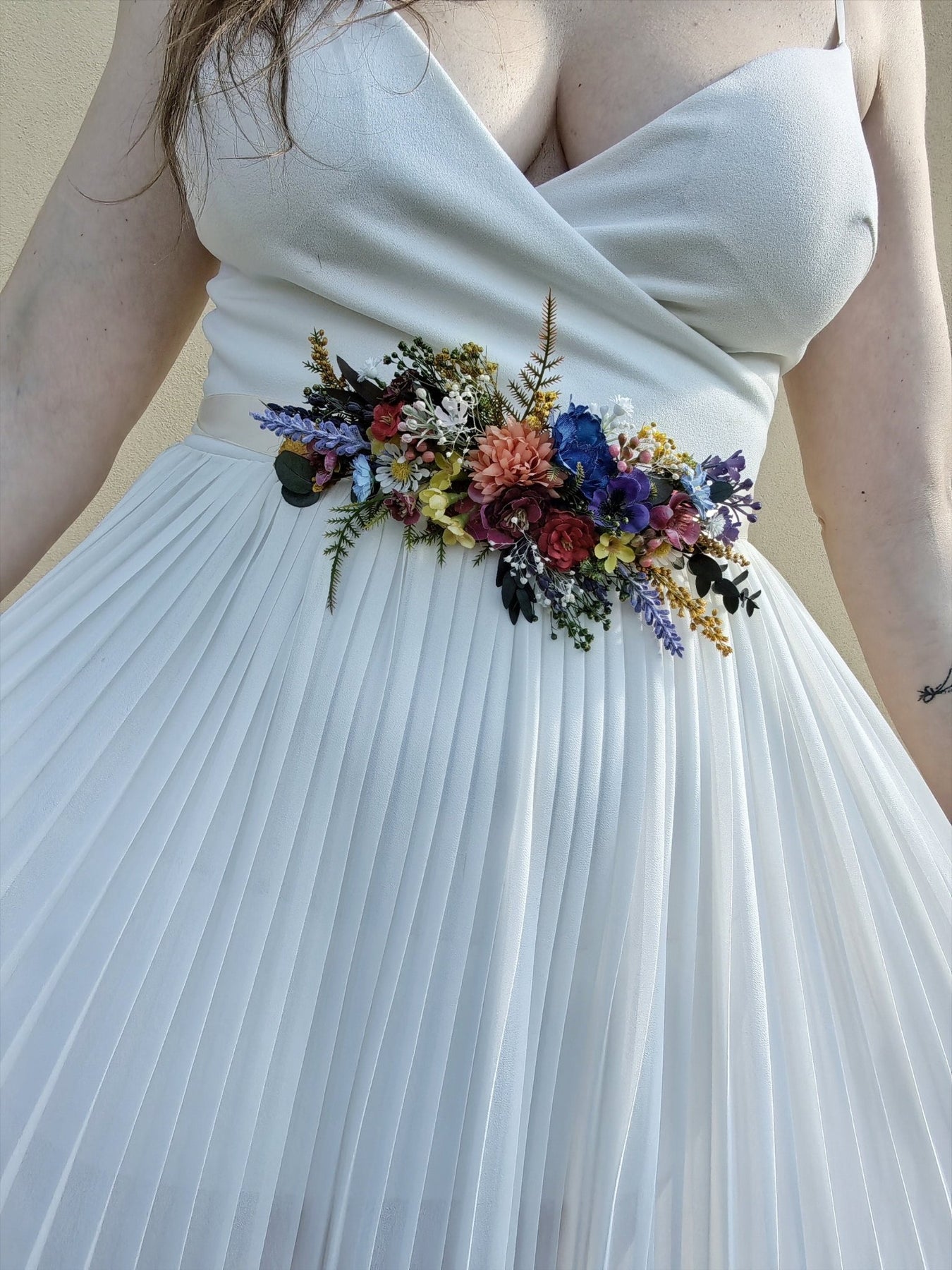 Wildflower Bridal Belt: Colorful Summer Wedding Sash – handmade floral hair accessory by magaela