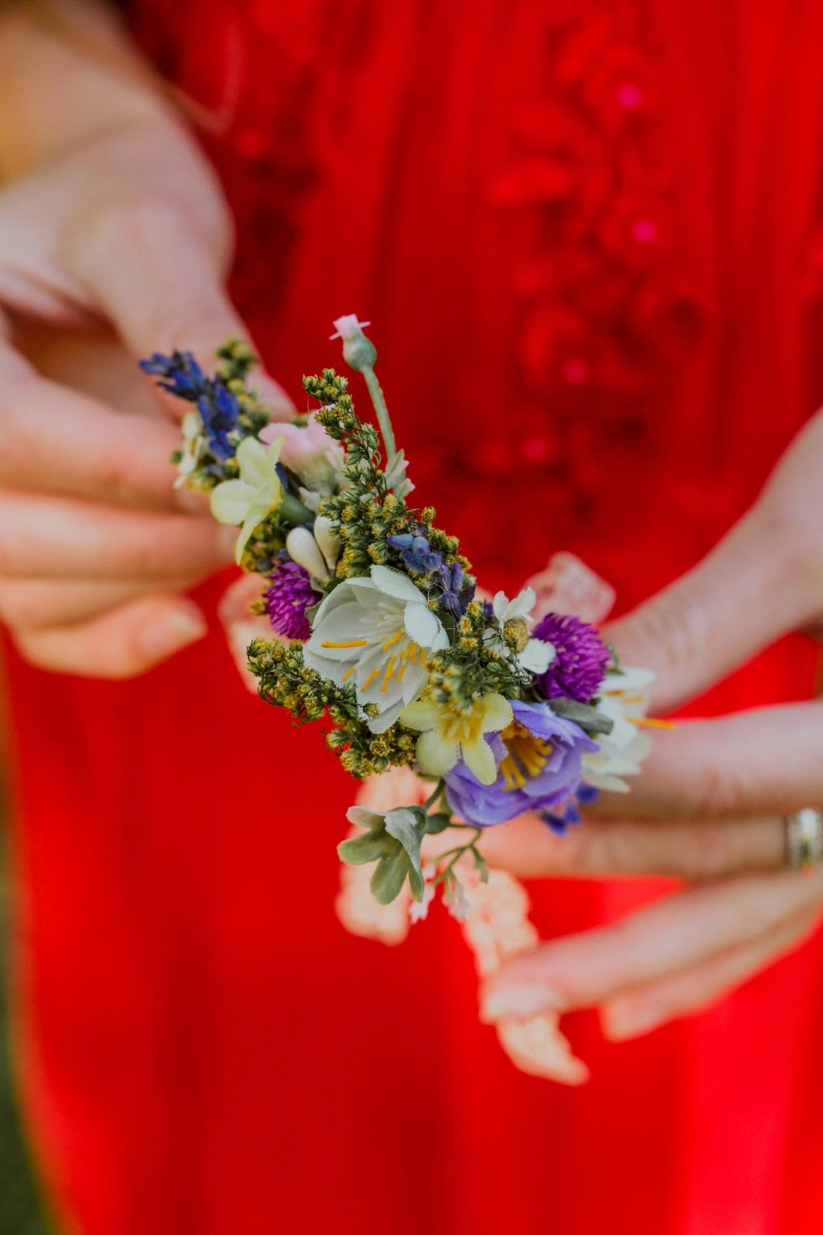 Wildflower Corsage Bracelet: Meadow Wedding Wrist Ribbon – handmade floral hair accessory by magaela