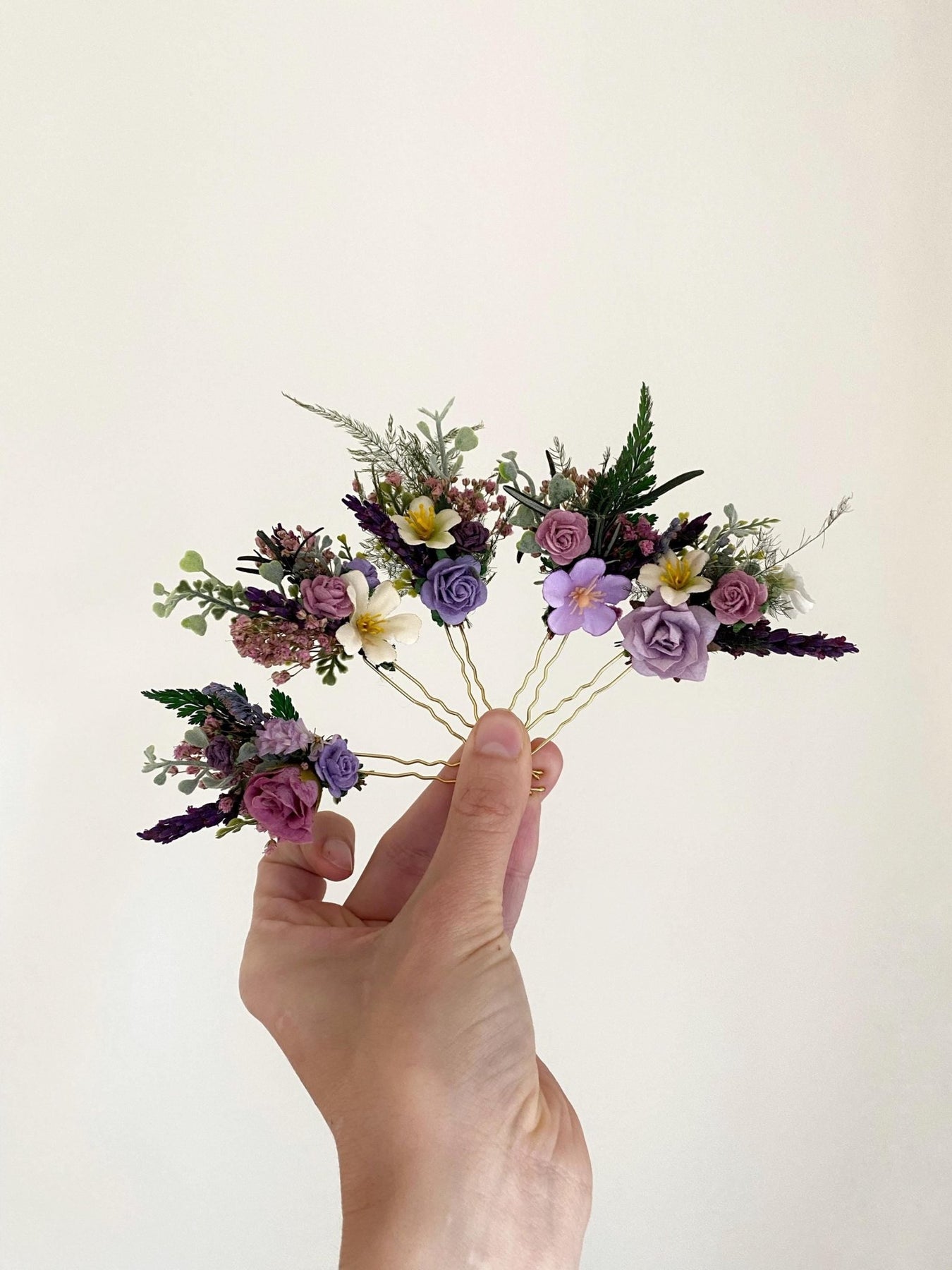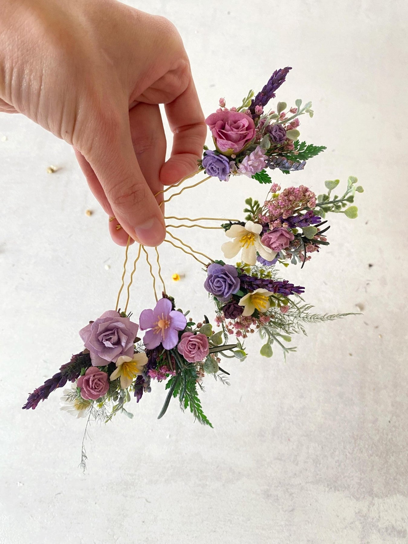 Boho Beach Wedding Hair Pins, Purple Wildflower Bridal Hair Accessories, Romantic Bride Hairpiece, Destination Wedding Flowers – handmade floral hair accessory by magaela