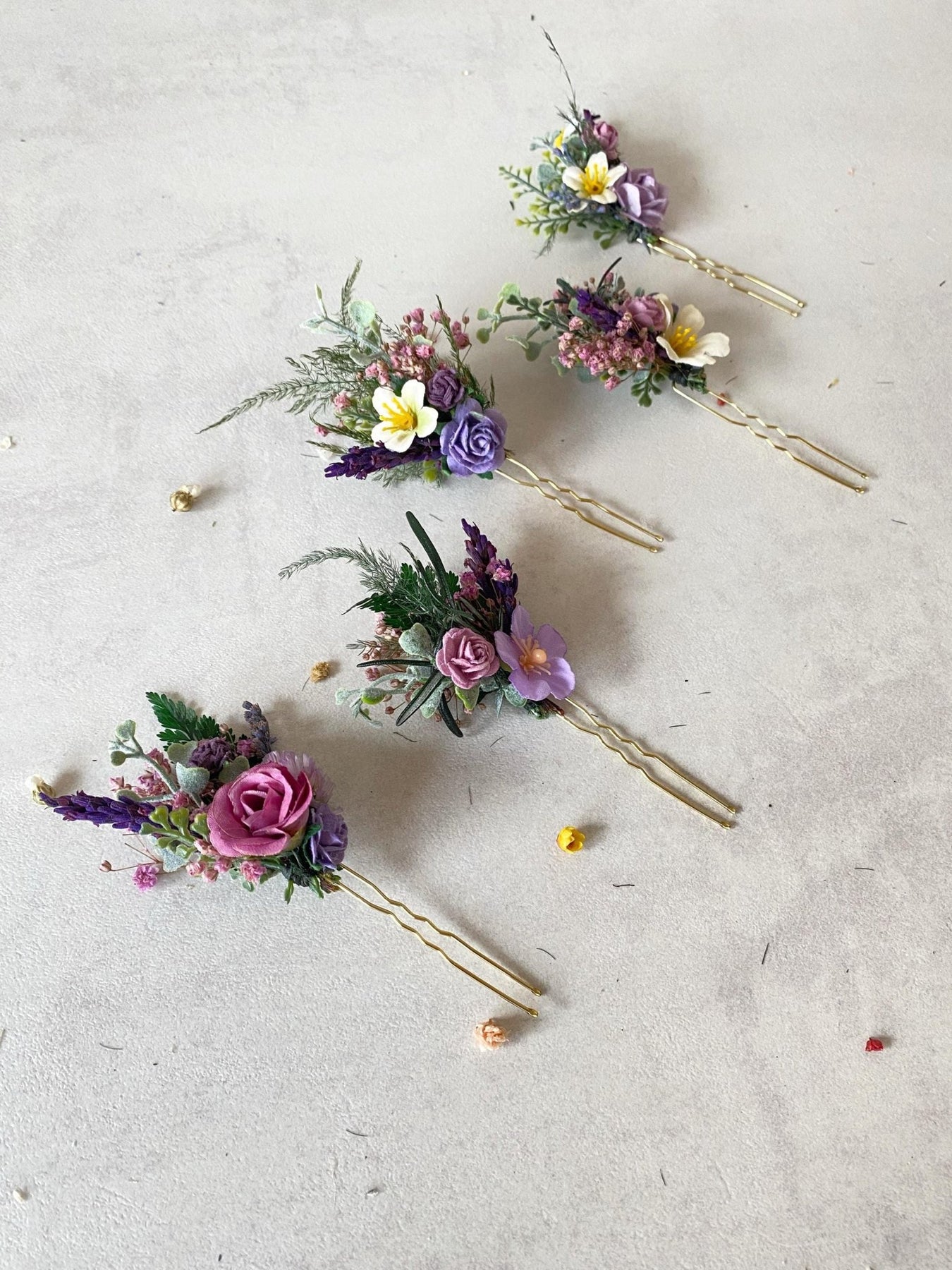 • 5 handcrafted floral hair pins