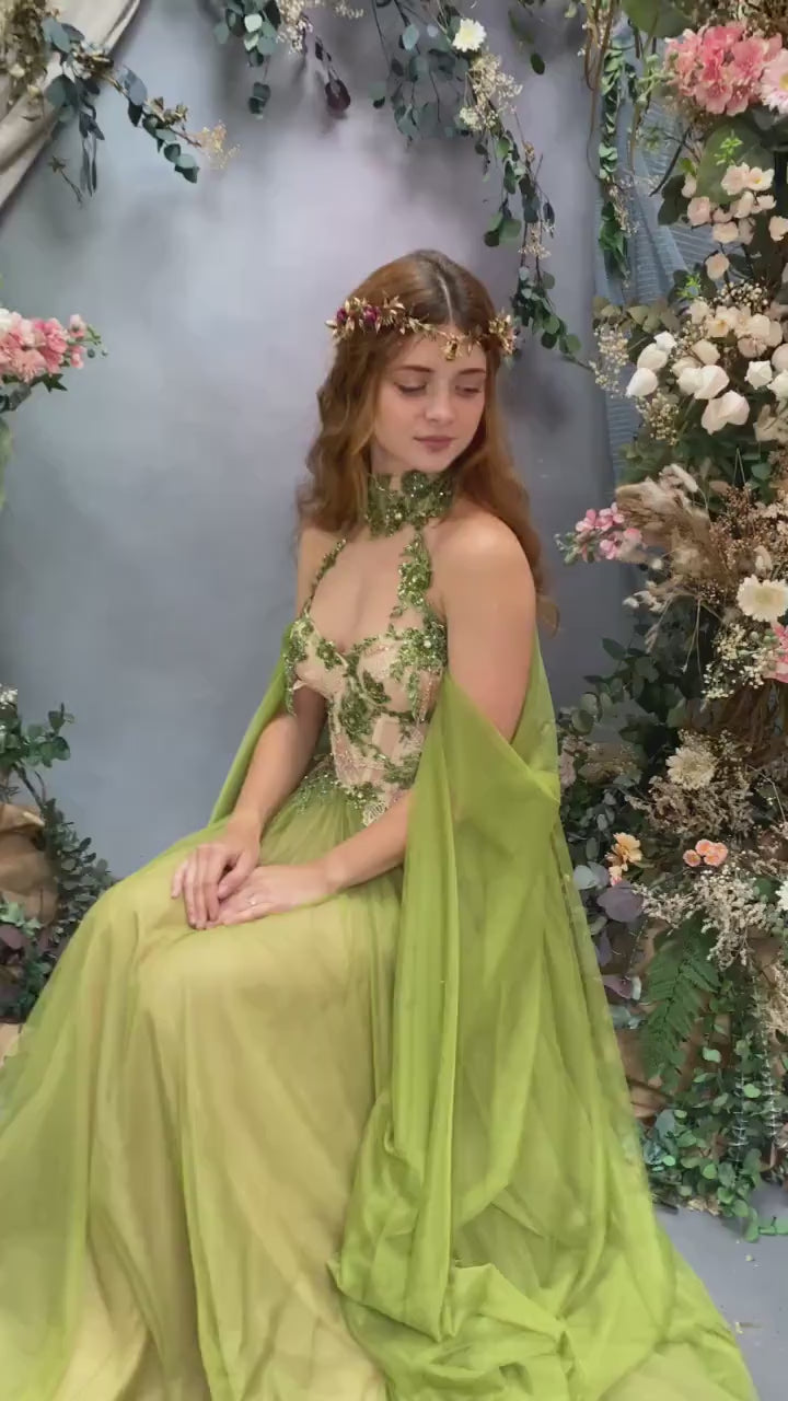 The flower tiara is made of preserved and artificial flowers, grass, a bee, and other arranging material.