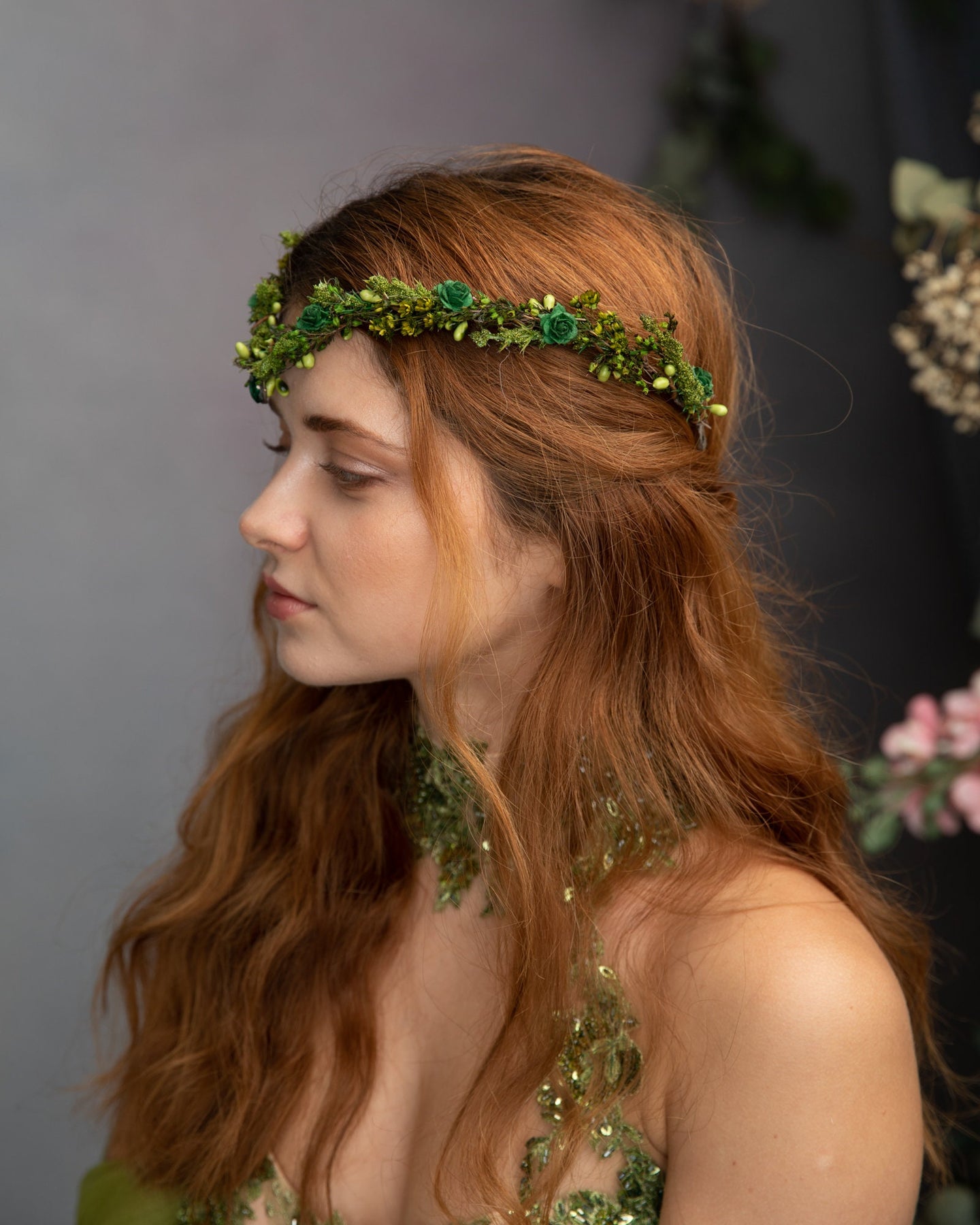 Green Flower Elf Tiara: Woodland Wedding Fairy Crown – handmade floral hair accessory by magaela