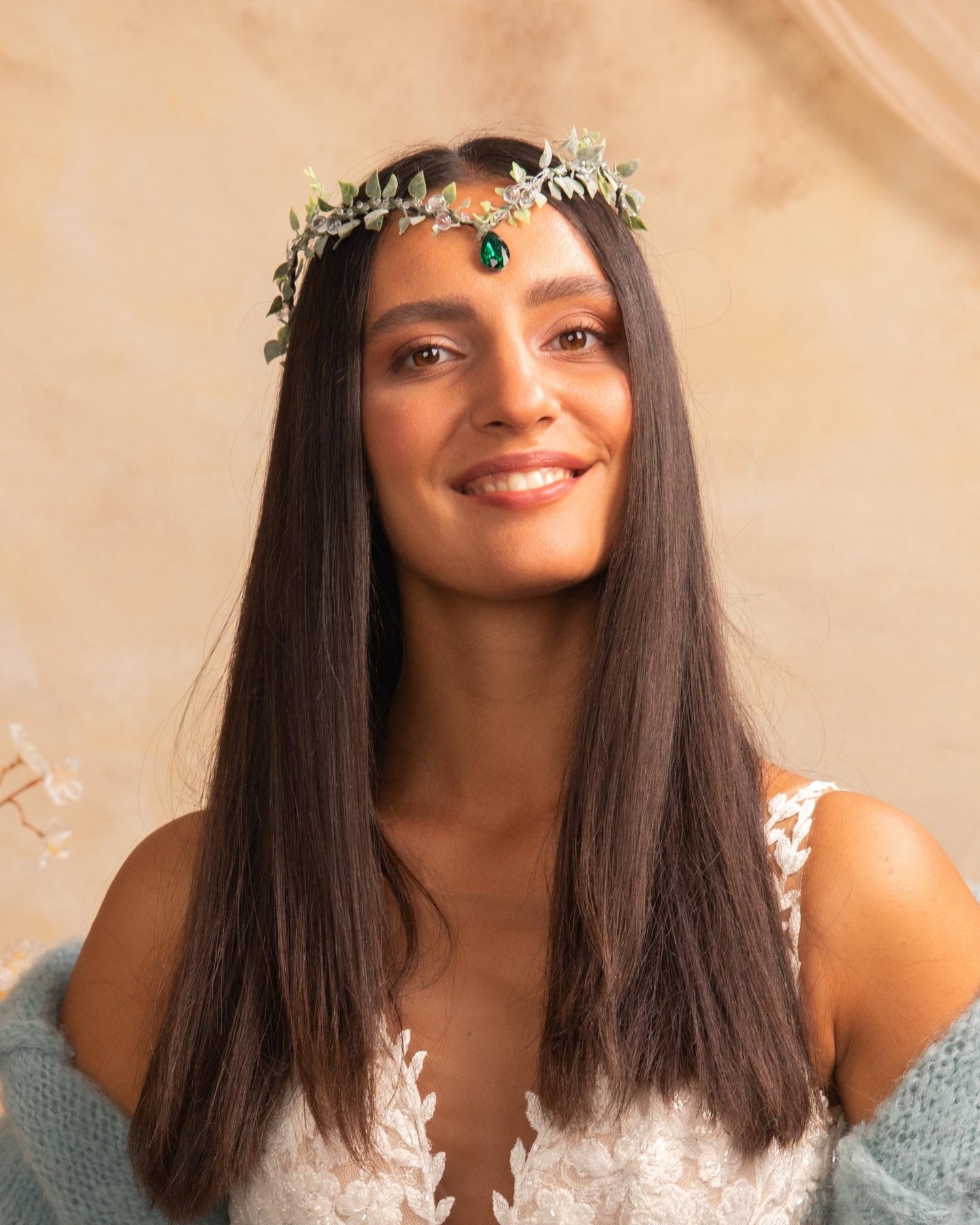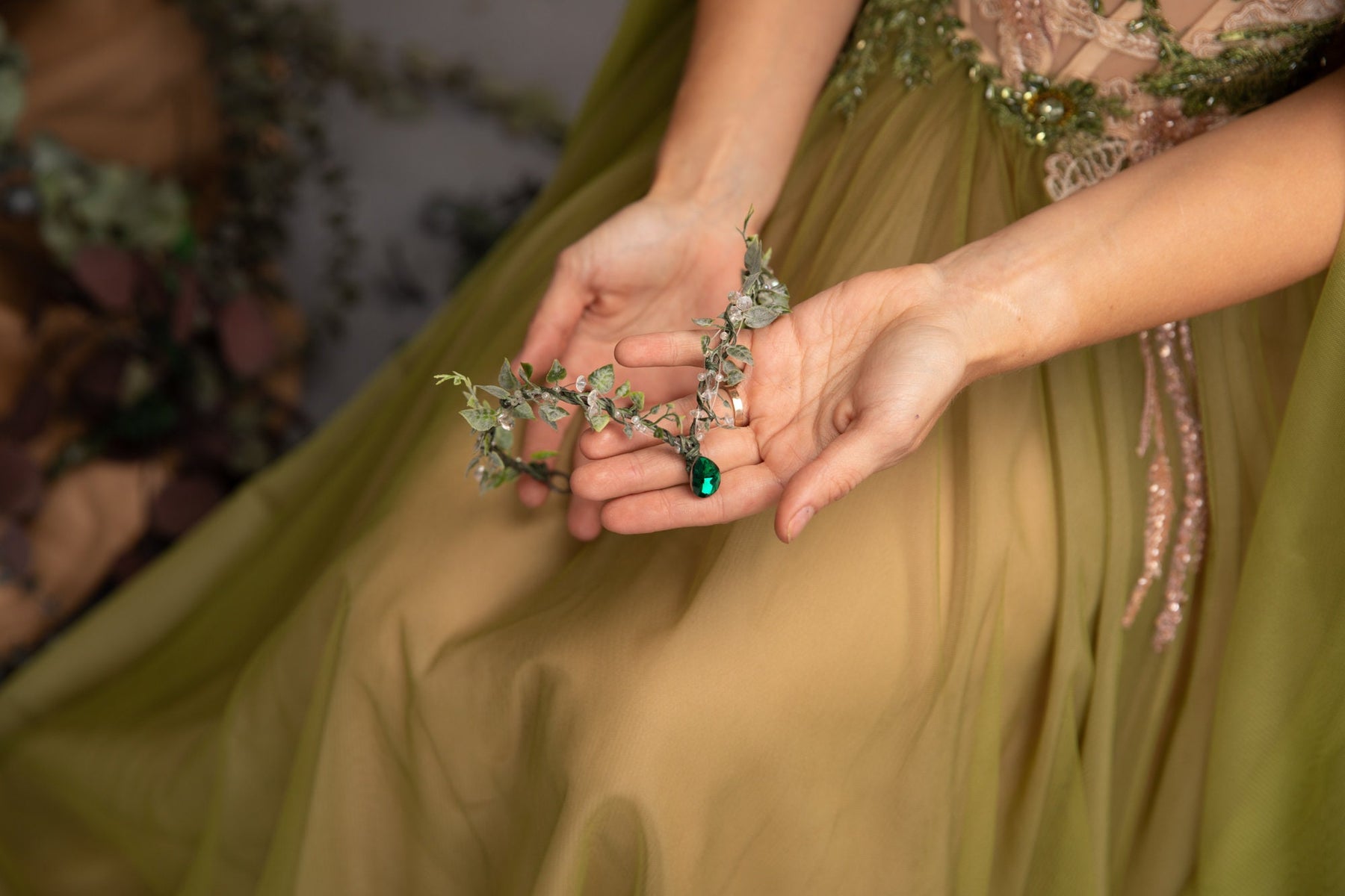 This handcrafted greenery tiara is inspired by elven elegance, forest magic and soft fairytale romance. Perfect for brides who want something unique, ethereal and deeply feminine.