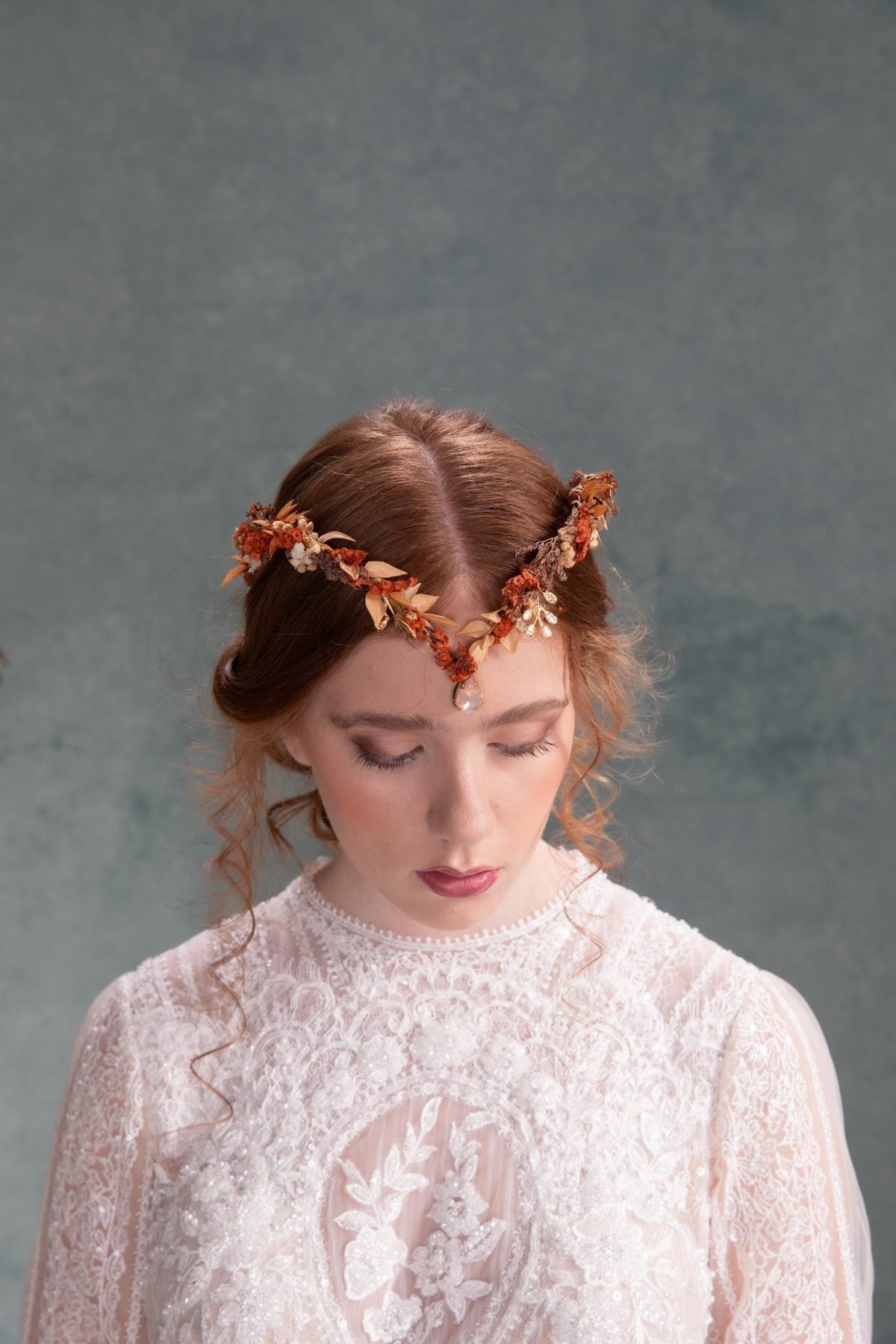 Terracotta Flower Crown: Rustic Bridal Tiara, Autumn Wedding – handmade floral hair accessory by magaela