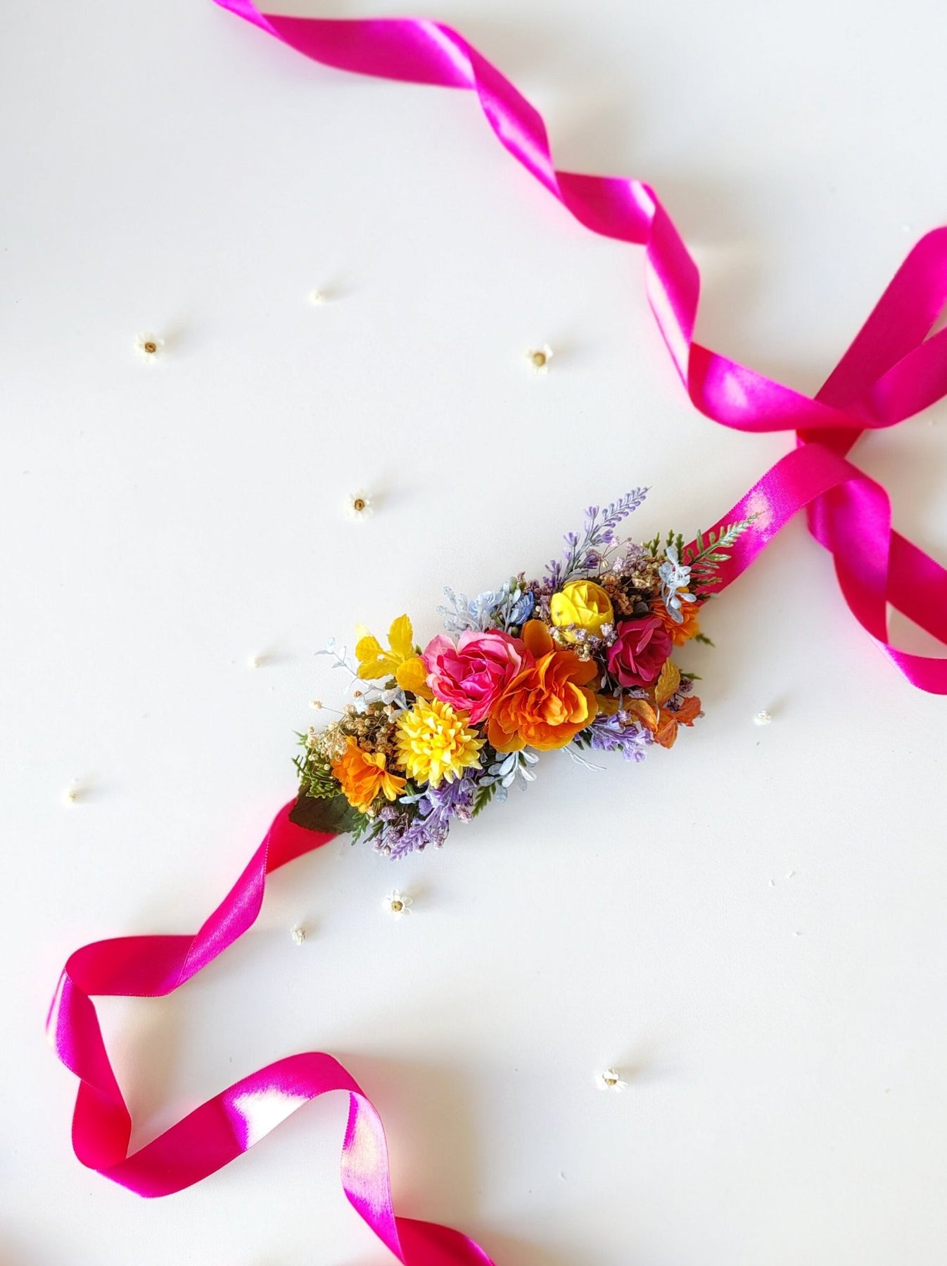 Floral Bridal Belt: Colorful Wildflower Wedding Dress Sash – handmade floral hair accessory by magaela