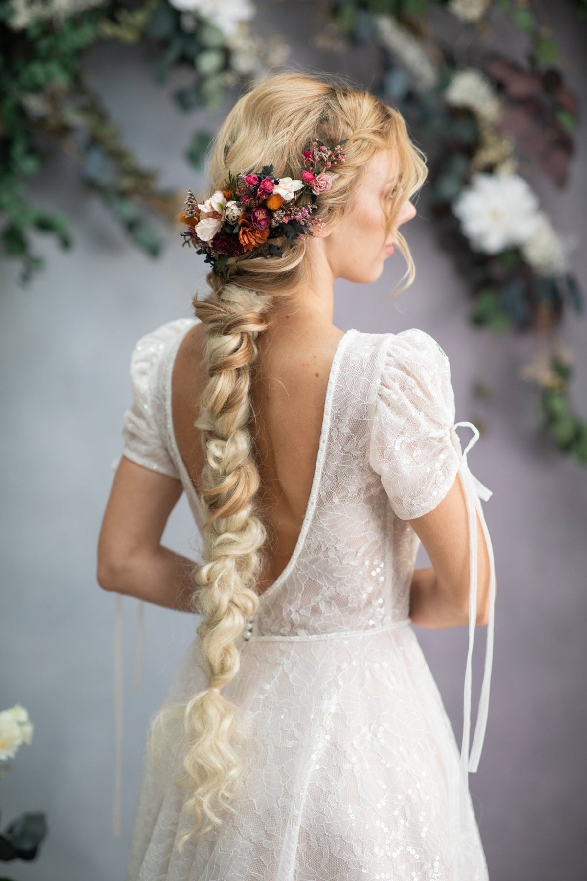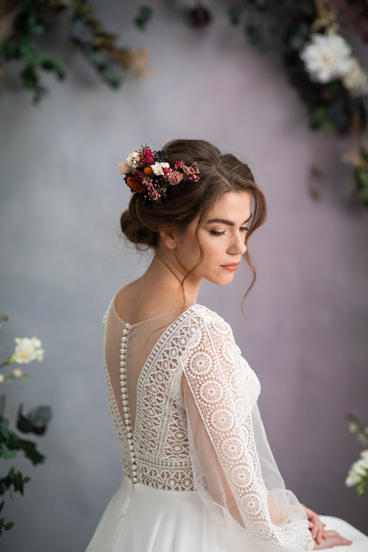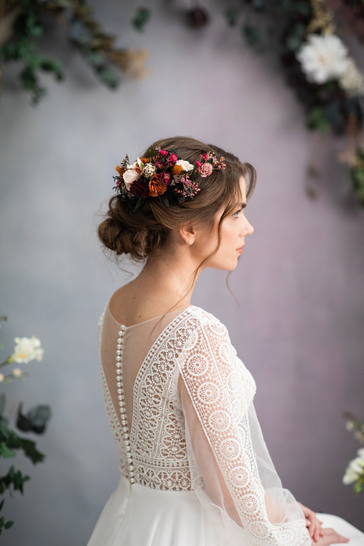 Autumn Flower Hair Comb: Burgundy Magenta Wedding Hair Accessory – handmade floral hair accessory by magaela