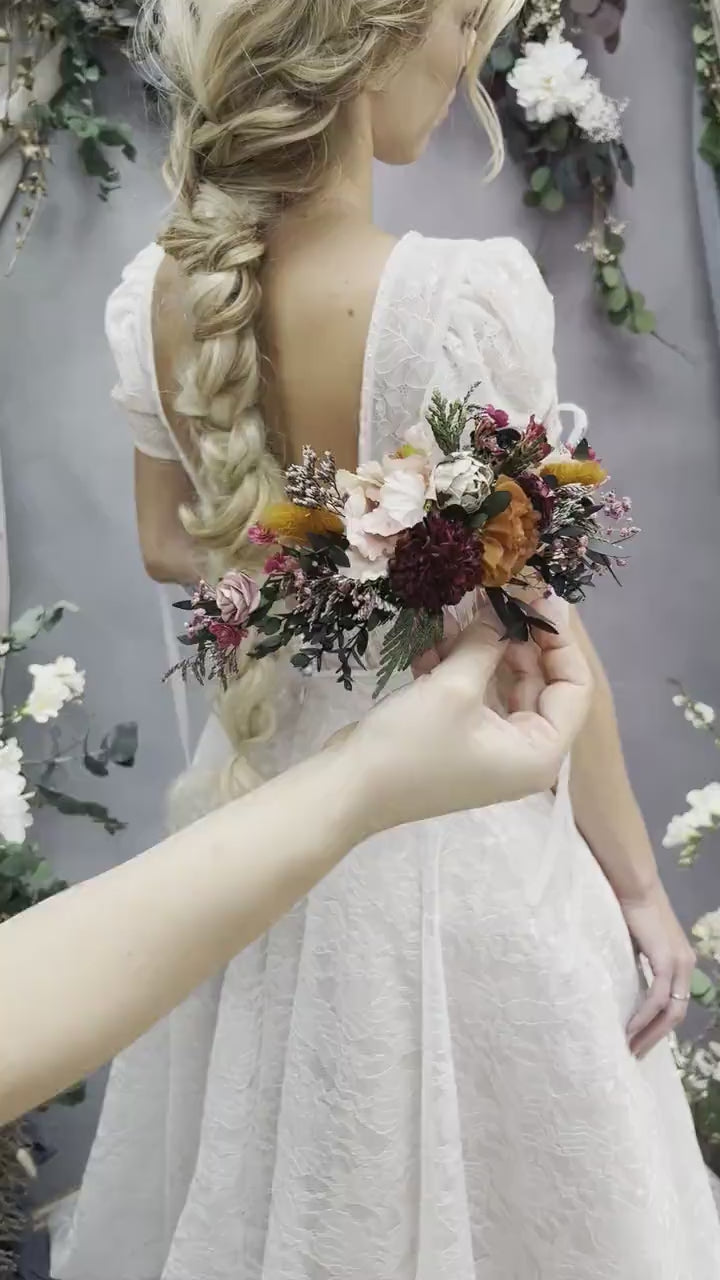 Autumn Flower Hair Comb: Burgundy Magenta Wedding Hair Accessory