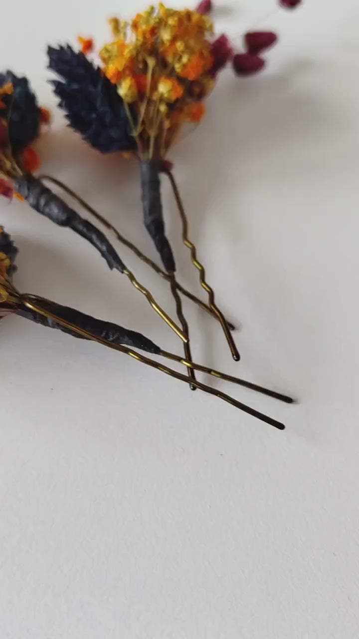 Autumn Flower Hair Pins: Burnt Orange & Navy Wedding Hair Flowers