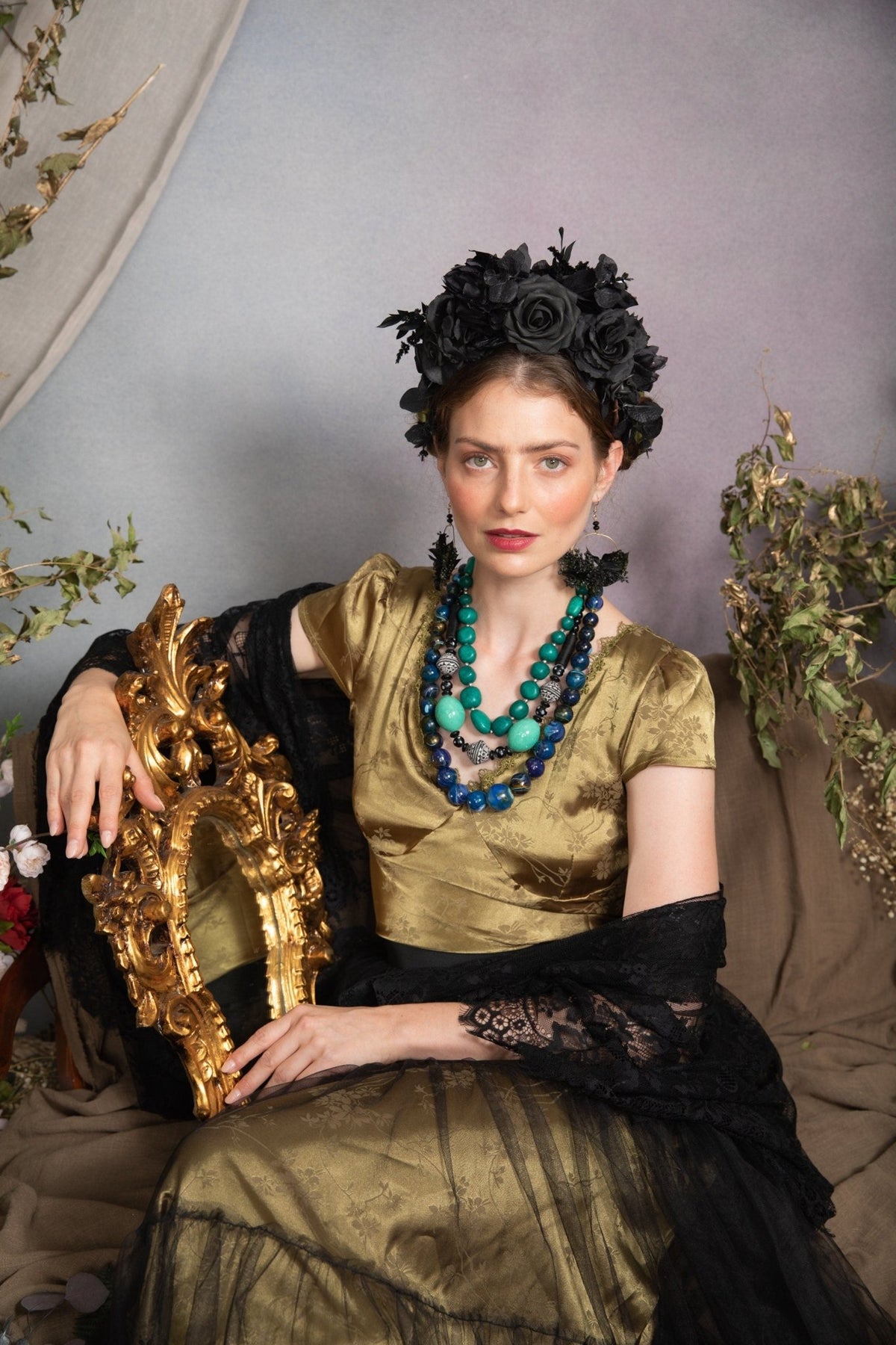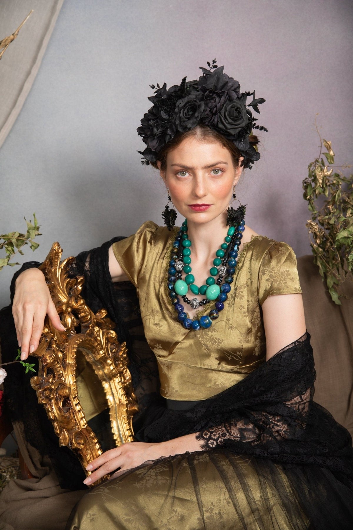 Black Flower Circle Dangle Earrings: Gothic Wedding Jewelry – handmade floral hair accessory by magaela
