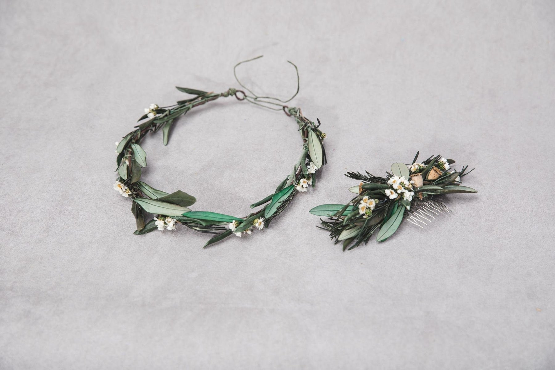 Greenery set of hair wreath and hair comb. Perfect for weddings or other special occasions. Customisable.