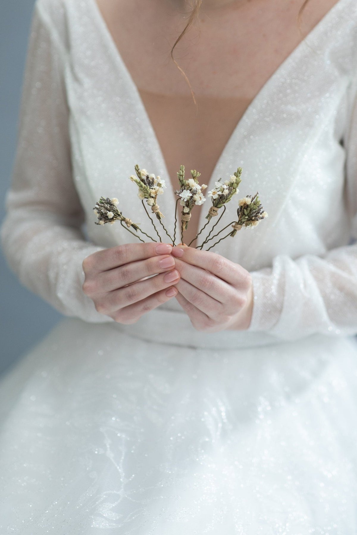 Dried Flower Hair Pins: Boho Wedding Hair Accessories