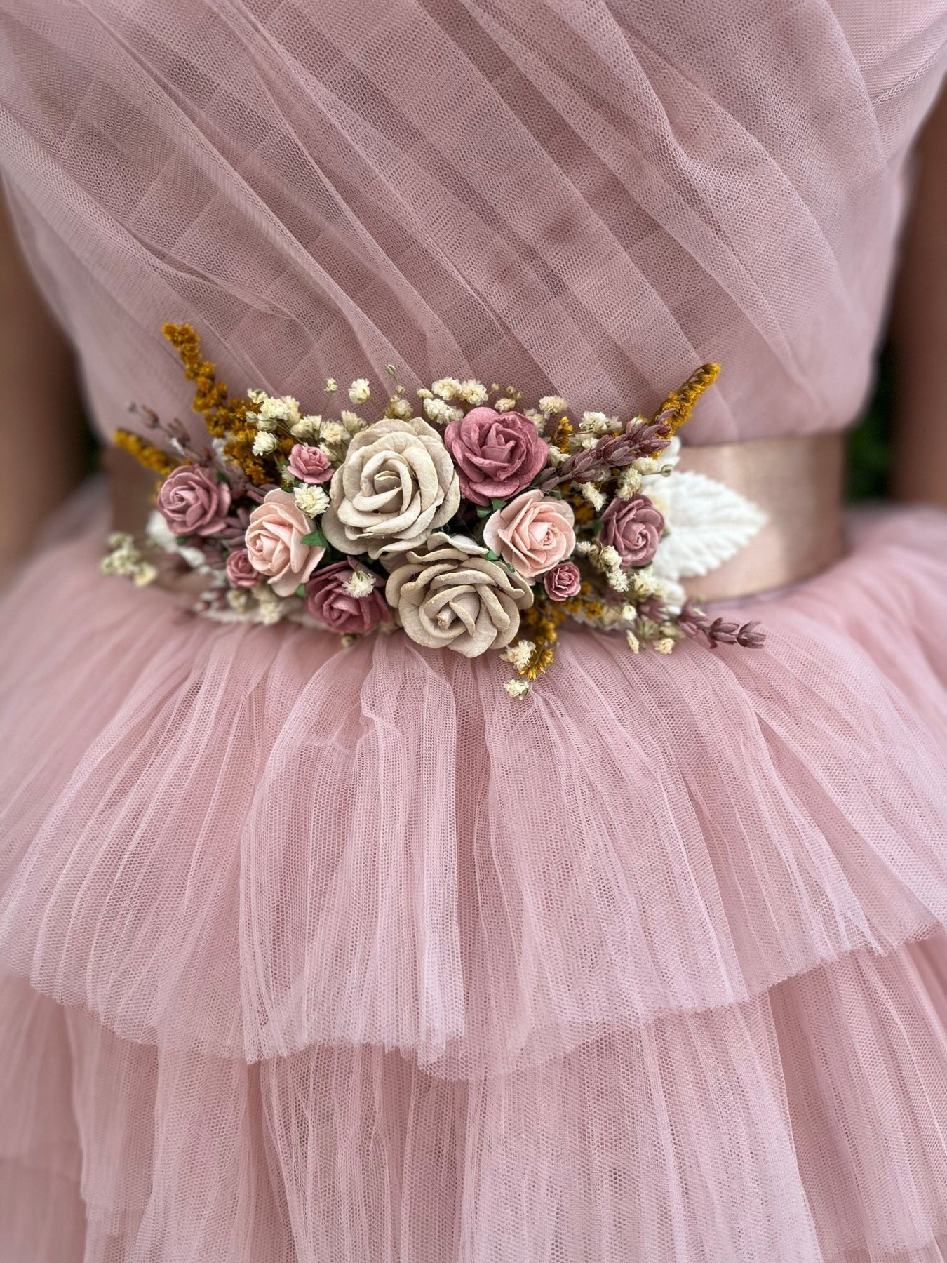 Dusty Pink Flower Belt: Romantic Wedding Dress Sash