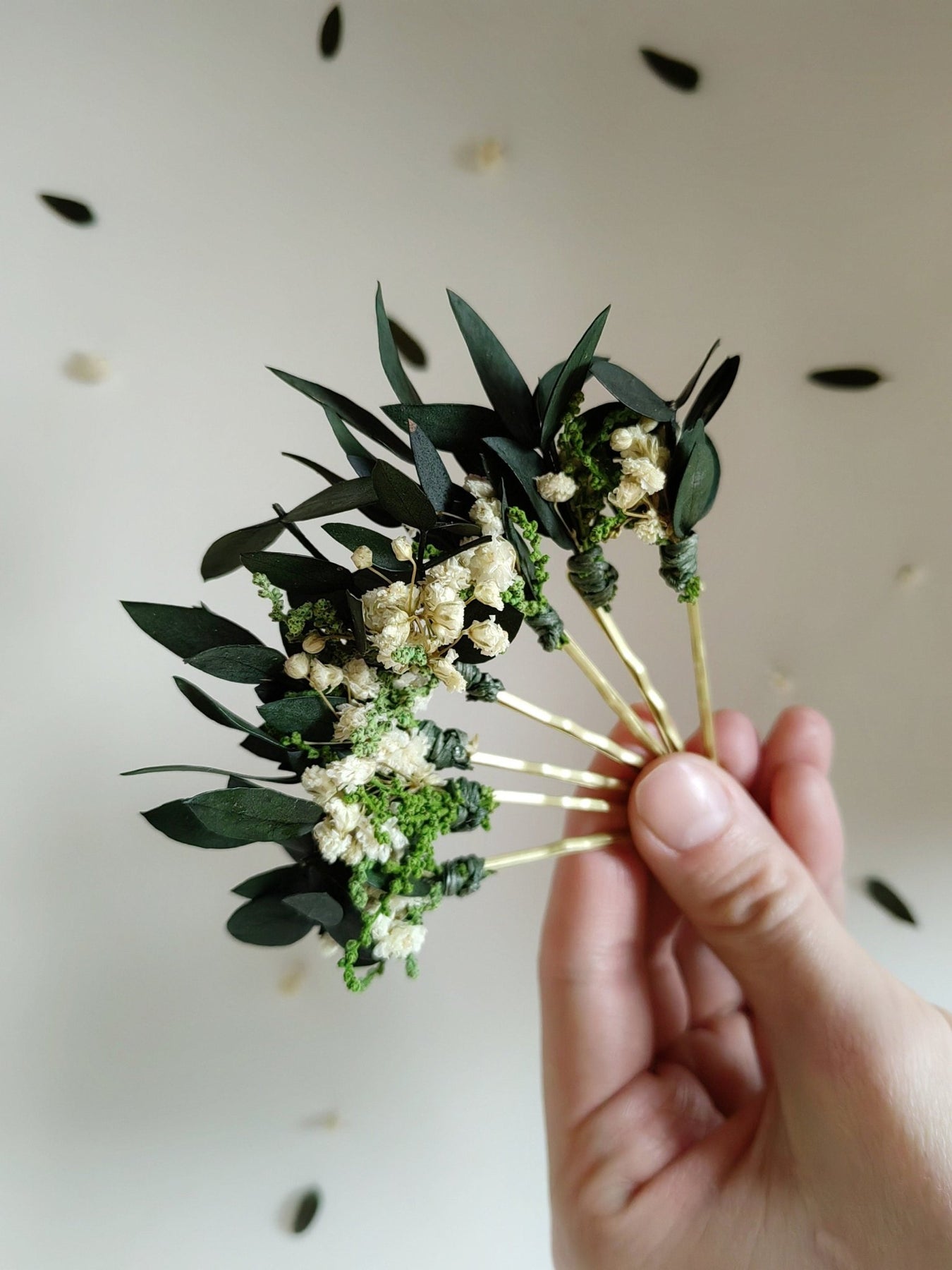 Greenery bridal flower hairpins. Perfect for brides, bridesmaids or for proms, other events or just everyday look.