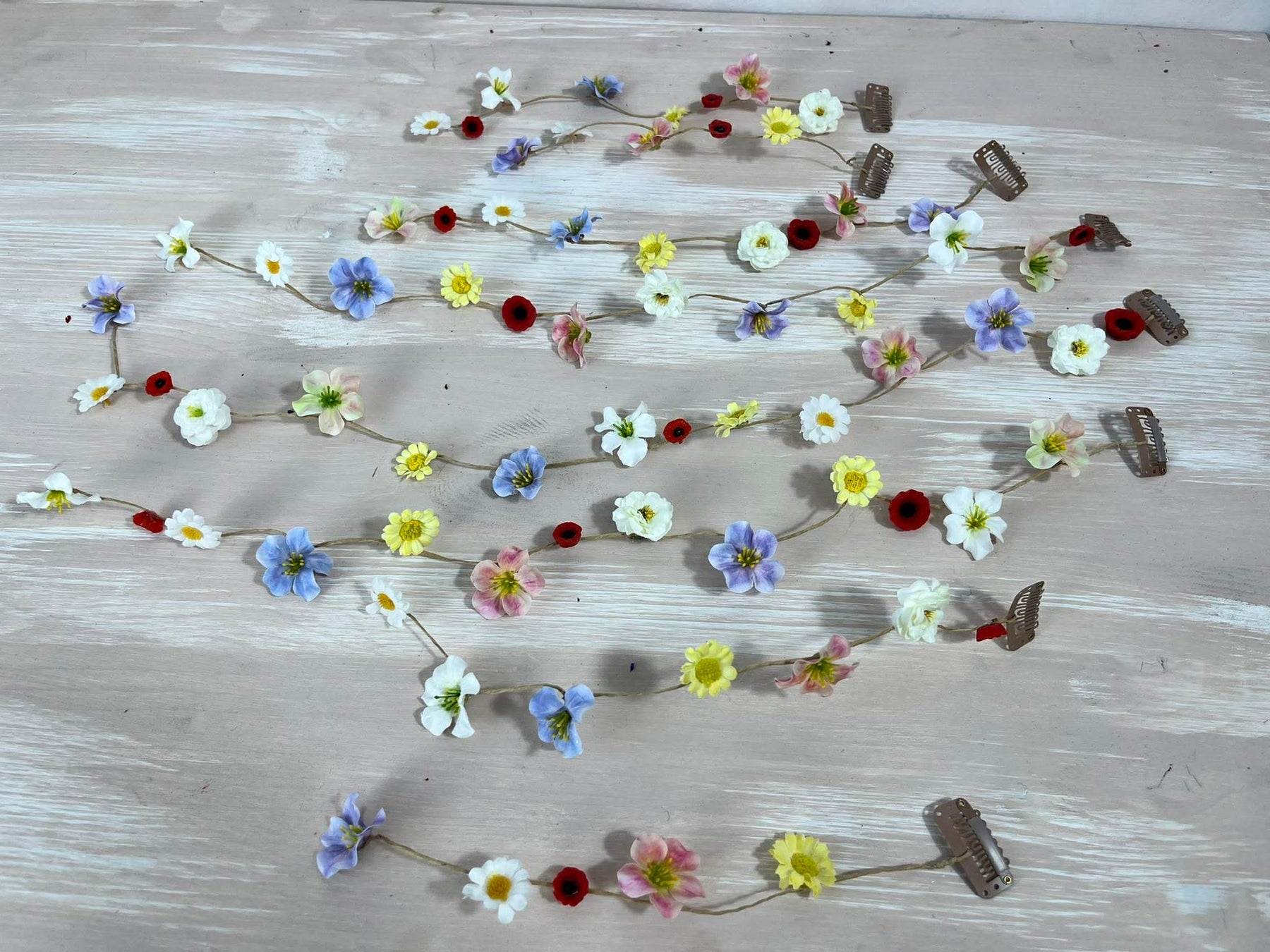 β’ Set includes: 1 floral wreath + 1 matching hair comb + 7 hanging clips