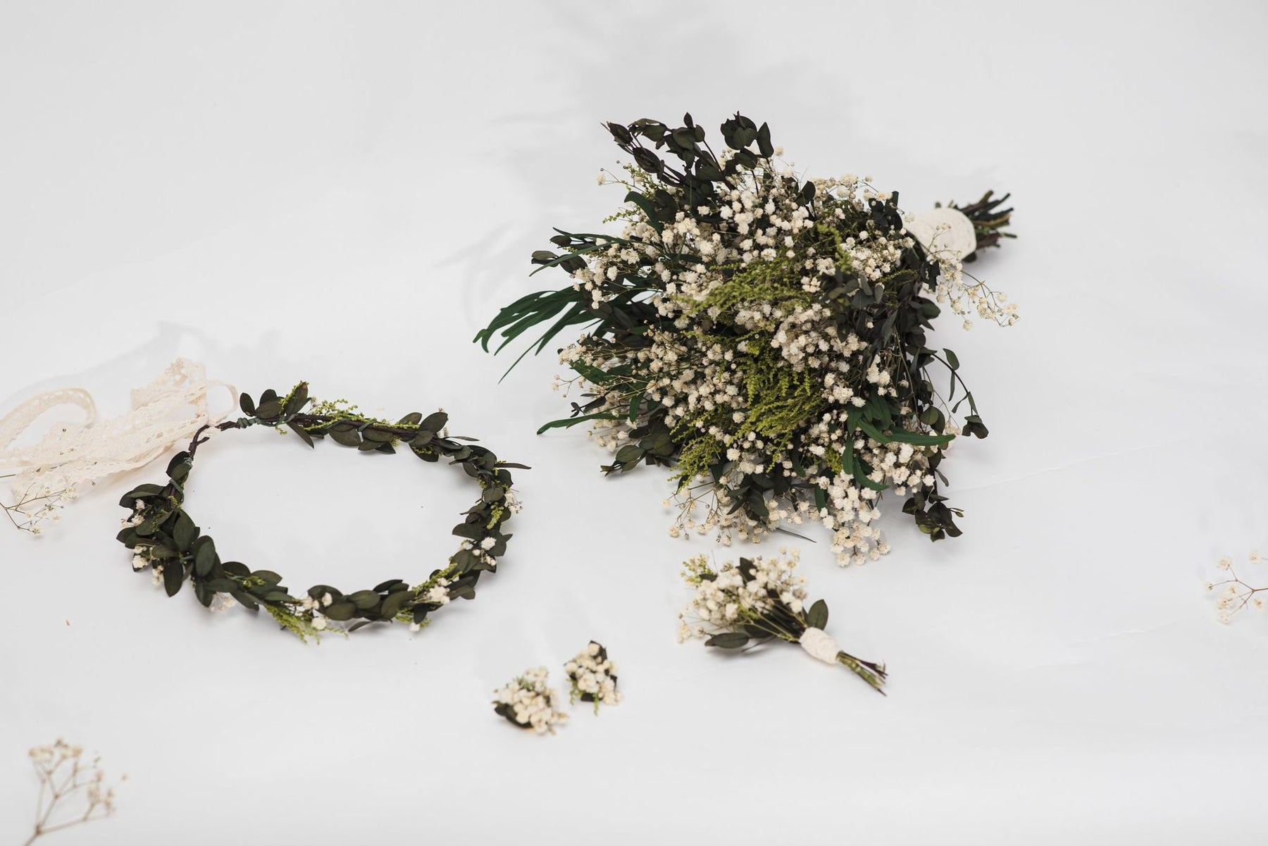 Preserved Eucalyptus Bridal Bouquet: Greenery & Baby's Breath Wedding Flowers – handmade floral hair accessory by magaela