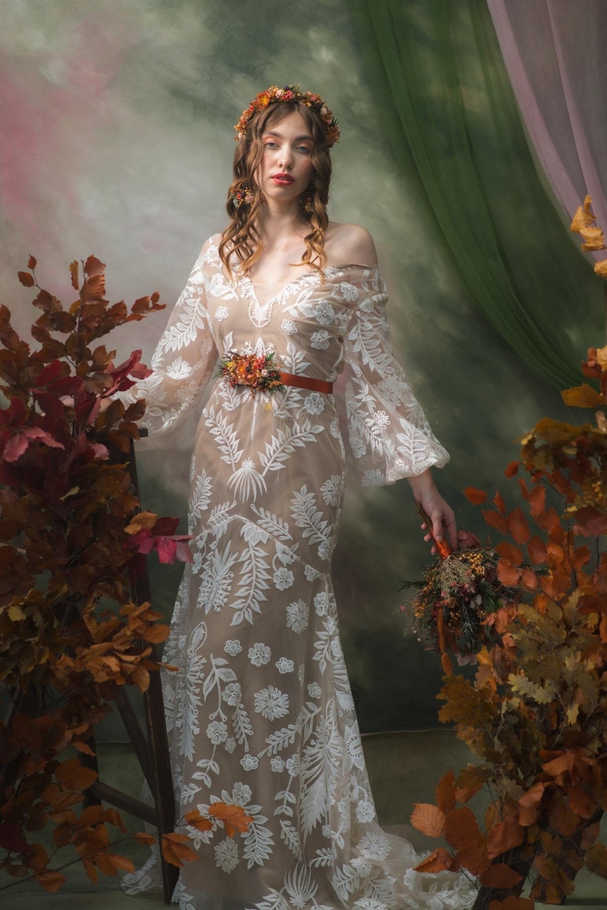 Bridal flower belt for (not only) wedding dress. Boho autumn design