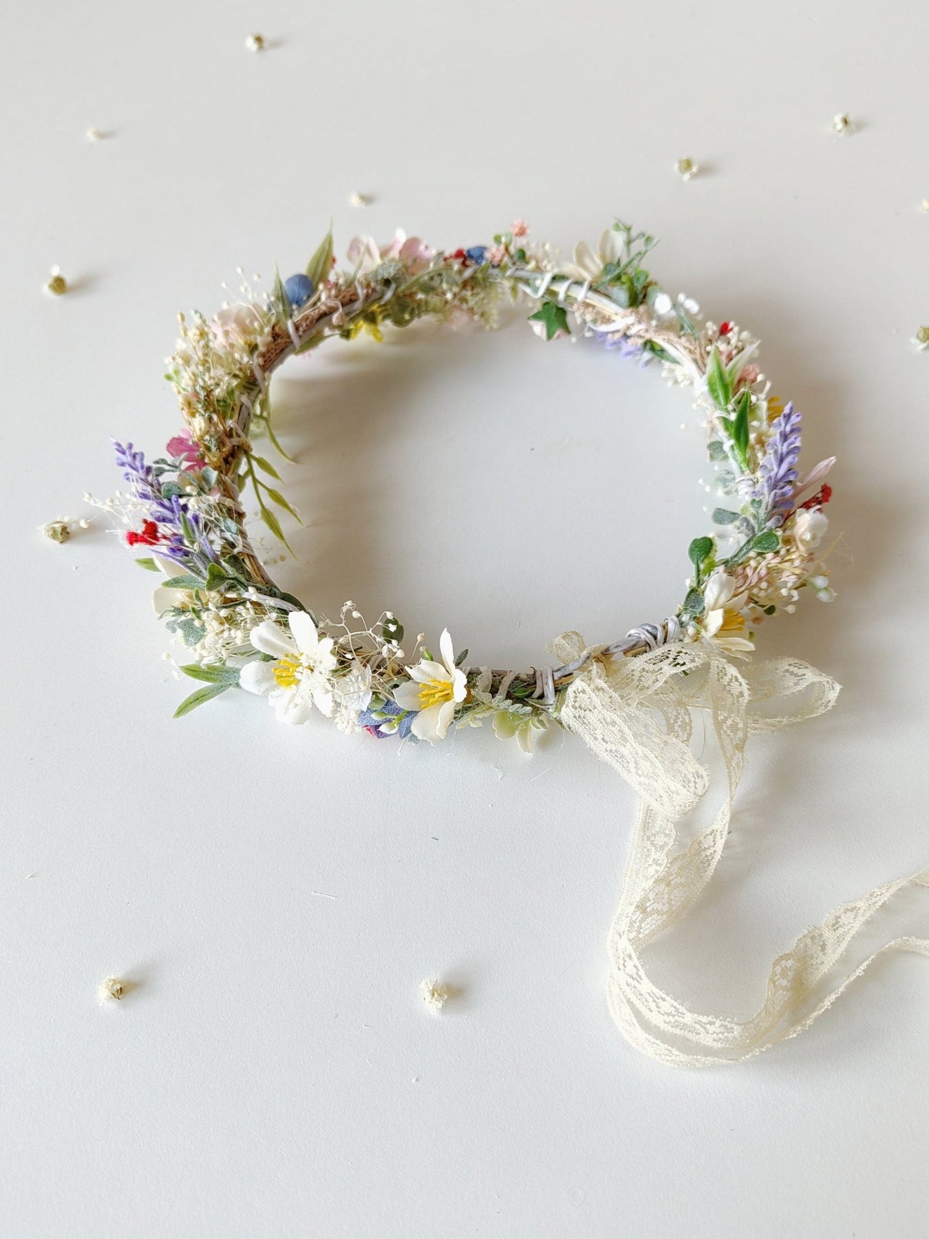 Wild flowers hair crown in meadow style. Perfect for weddings or proms and other special events.