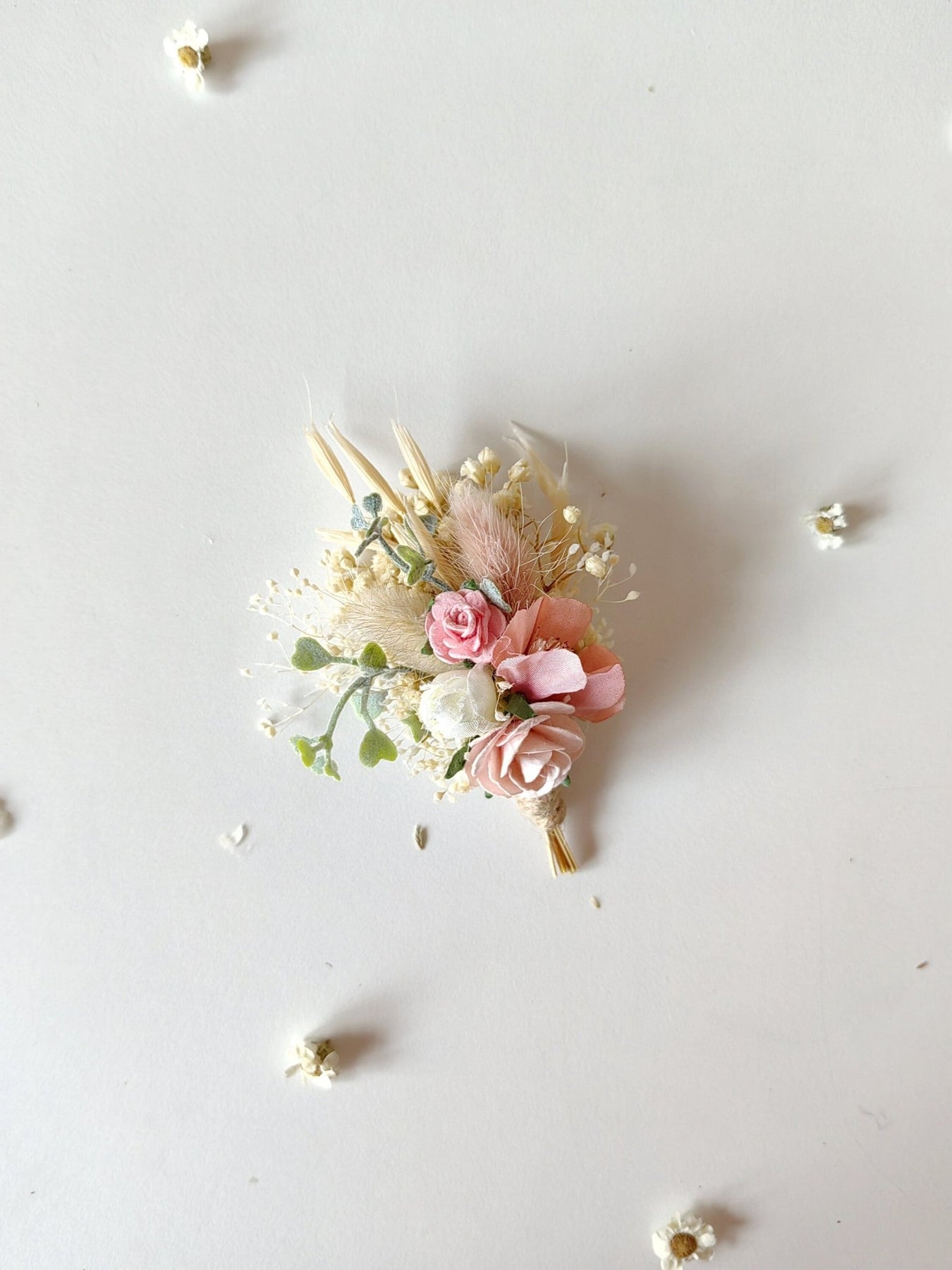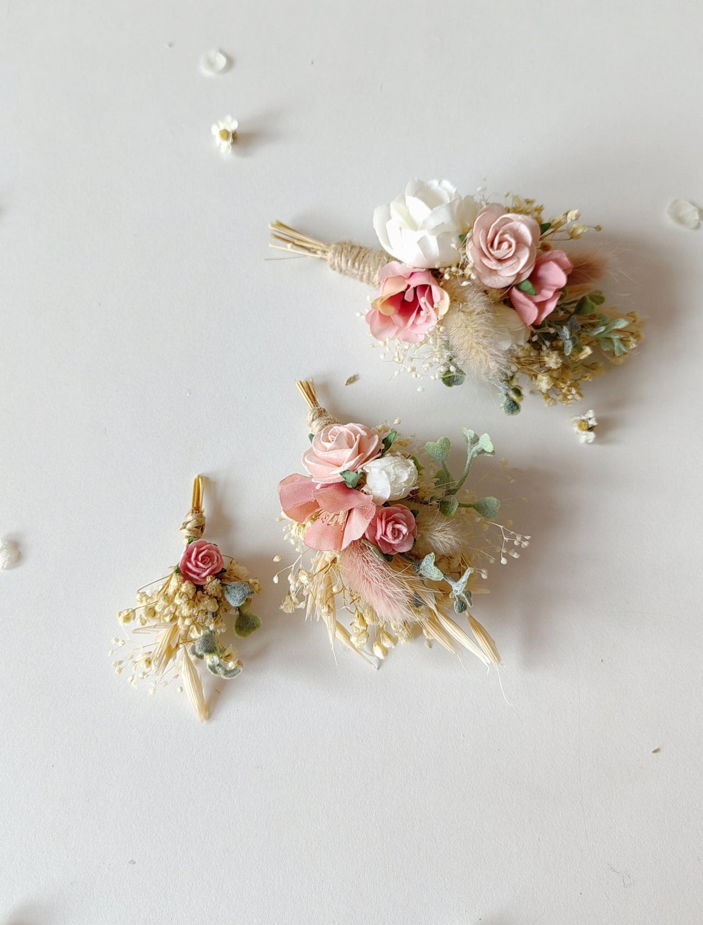 Dusty Pink Wedding Boutonniere: Groom & Bestman Flower Lapel – handmade floral hair accessory by magaela