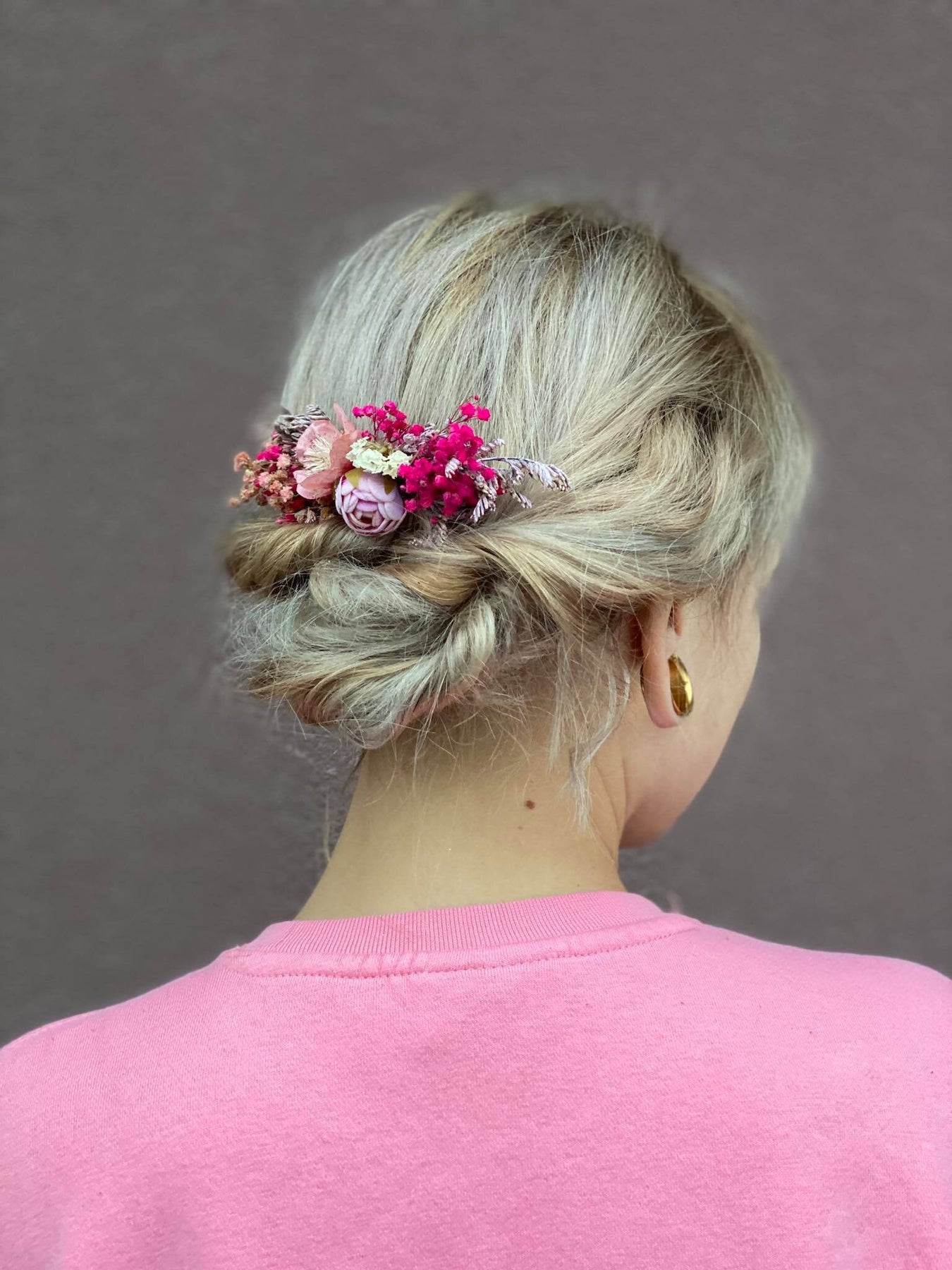 Pink Flower Hair Comb: Wedding Bridal Accessory – handmade floral hair accessory by magaela