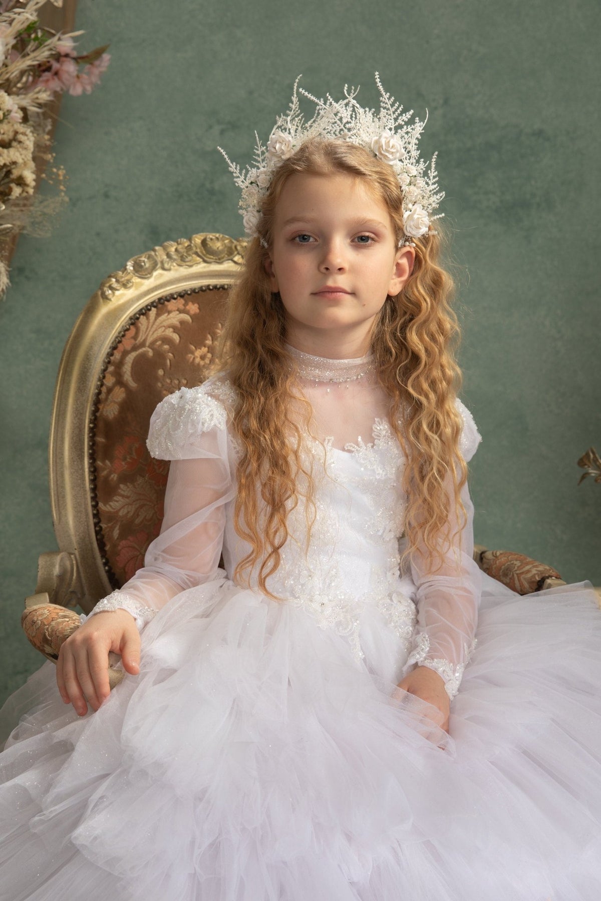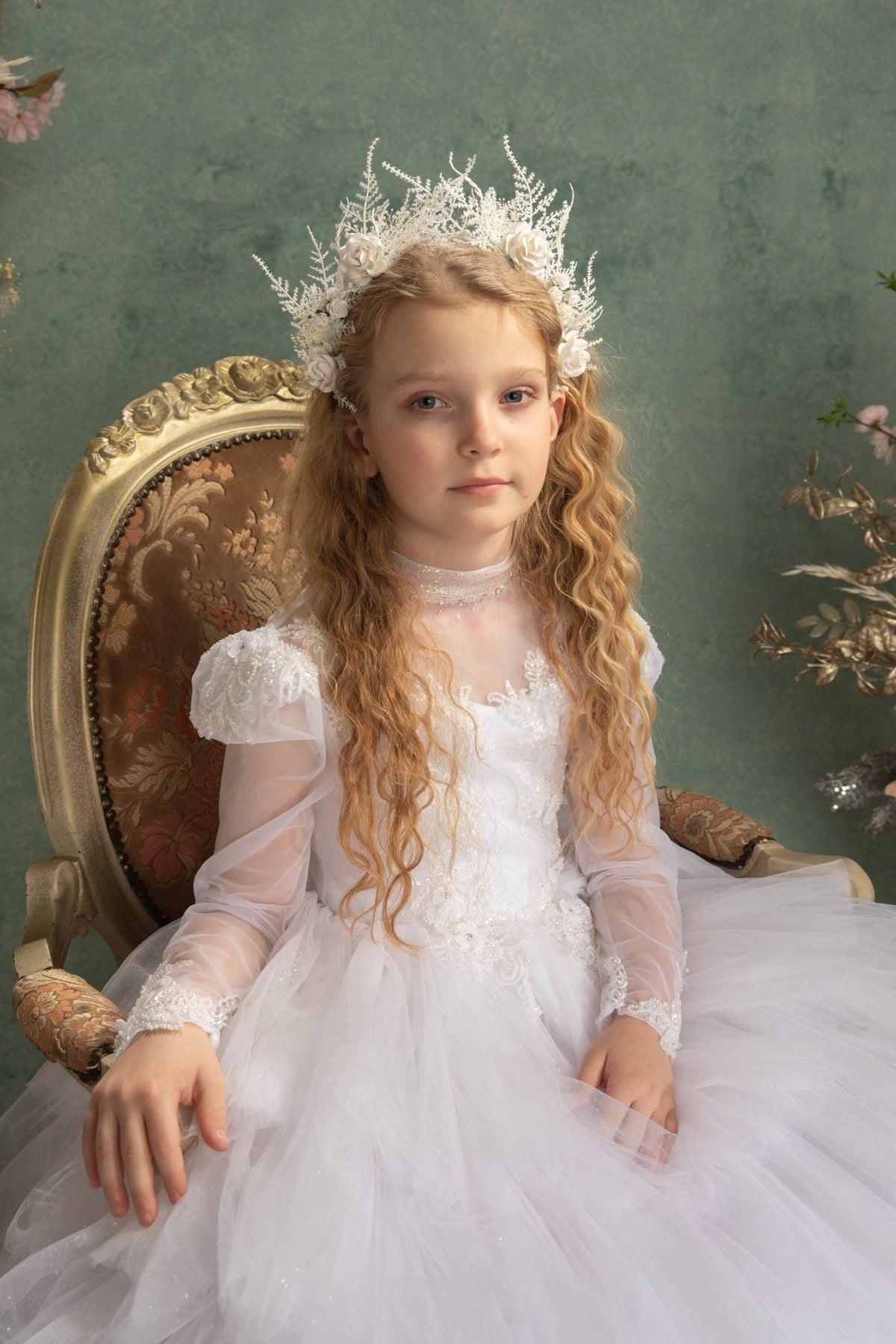 Winter flower crown with soft cream flowers. Suitabe for holy ccommunion, wedding or for proms and other special events.