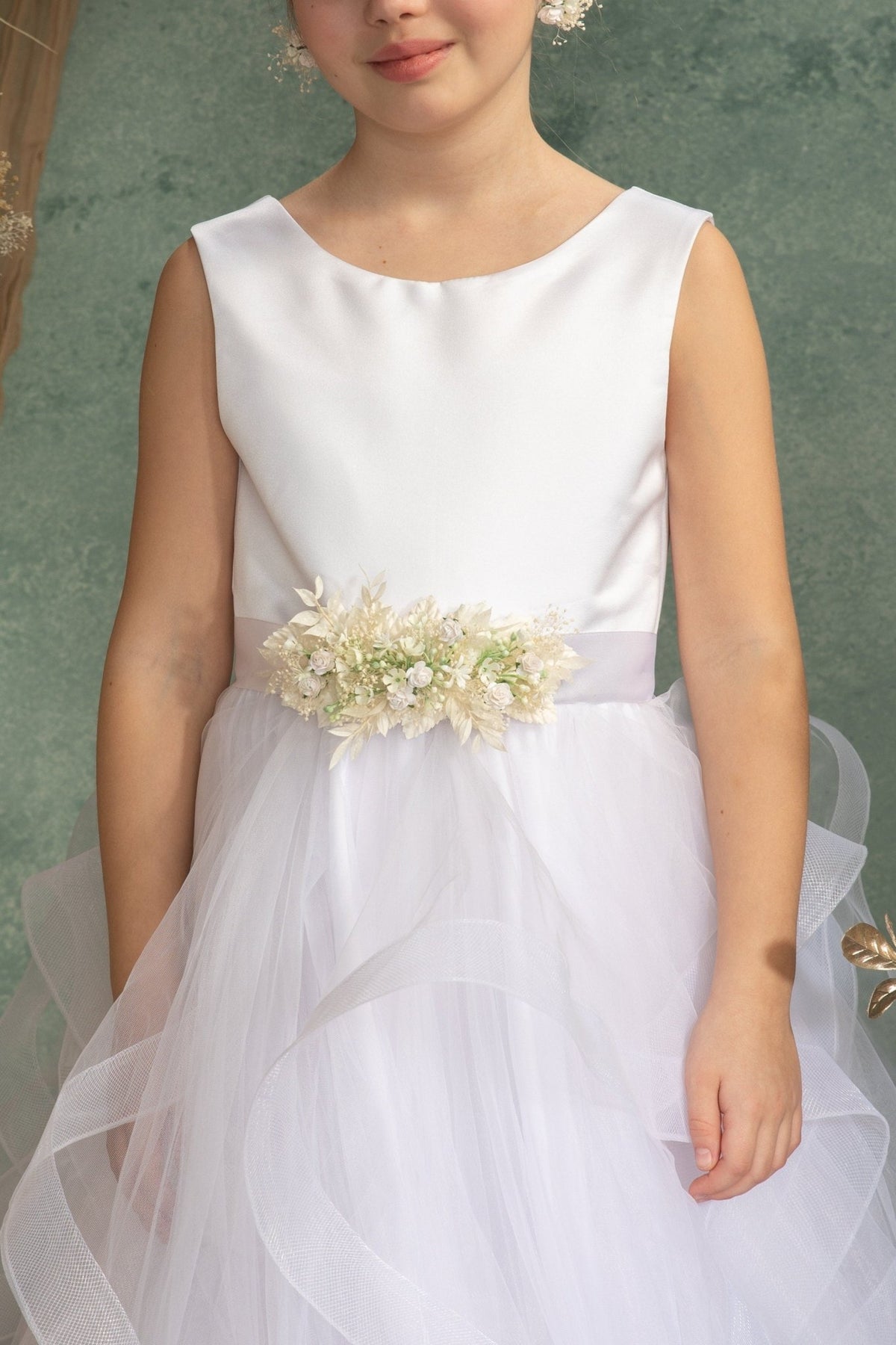 Cream Flower Girl Belt: Romantic First Communion Dress Sash