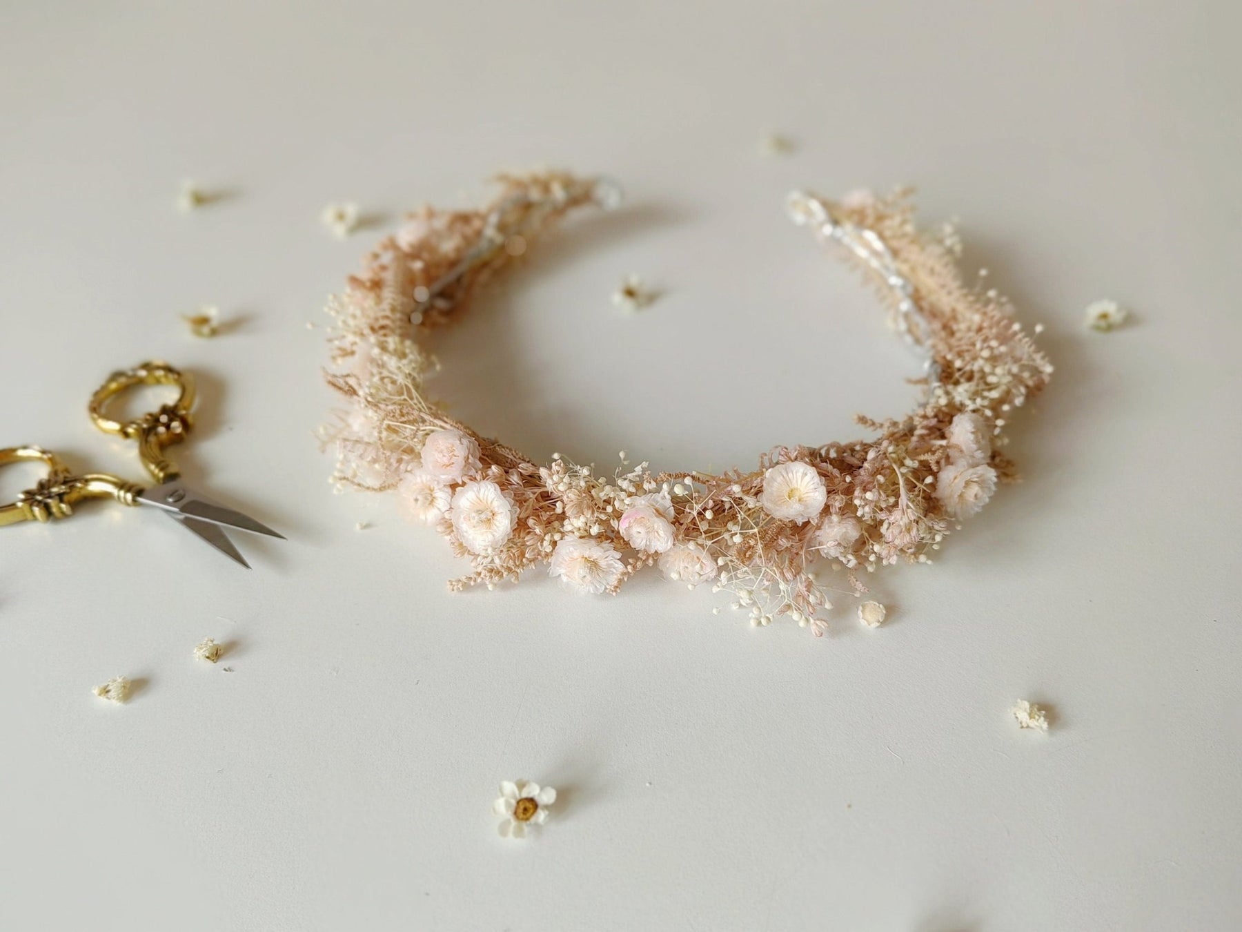 This hair wreath is made of preserved materiasl. Elegant headpiece handcrafted with love.