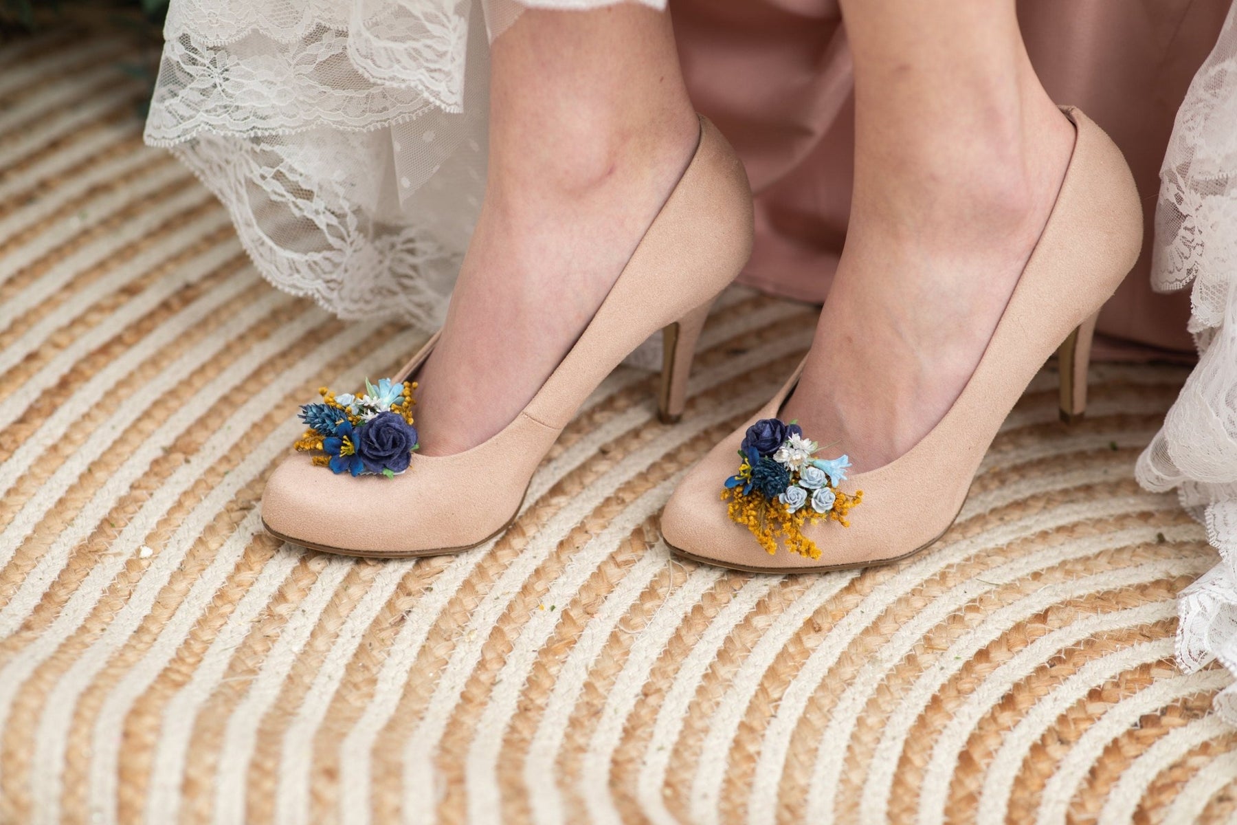 Romantic navy blue flower shoe clips