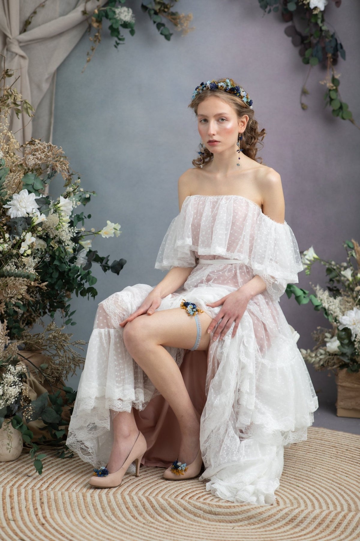 Blue Flower Shoe Clips: Bridal Shoe Decoration – handmade floral hair accessory by magaela